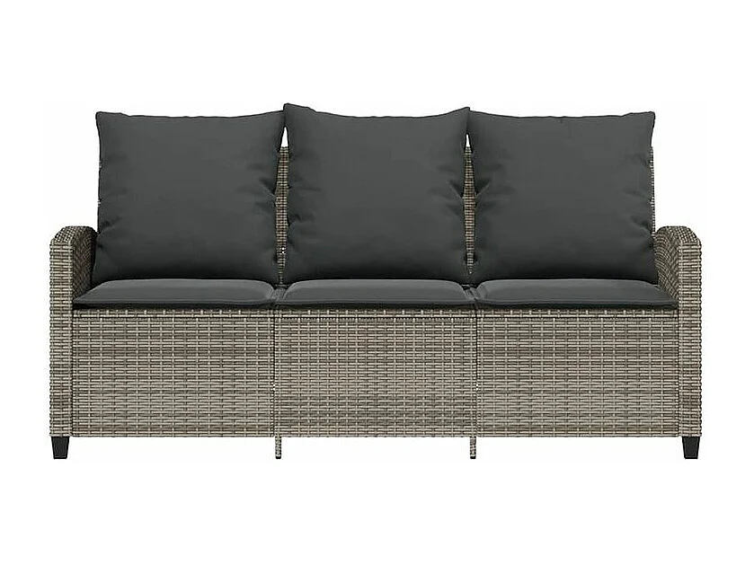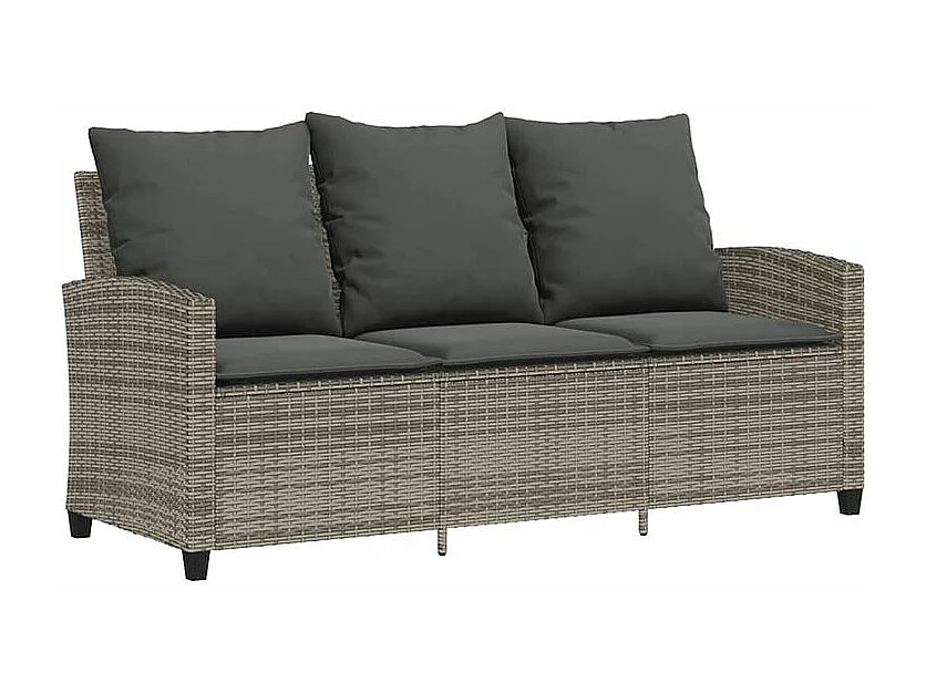 Canapé de jardin 3 places coussins et table gris résine tressée