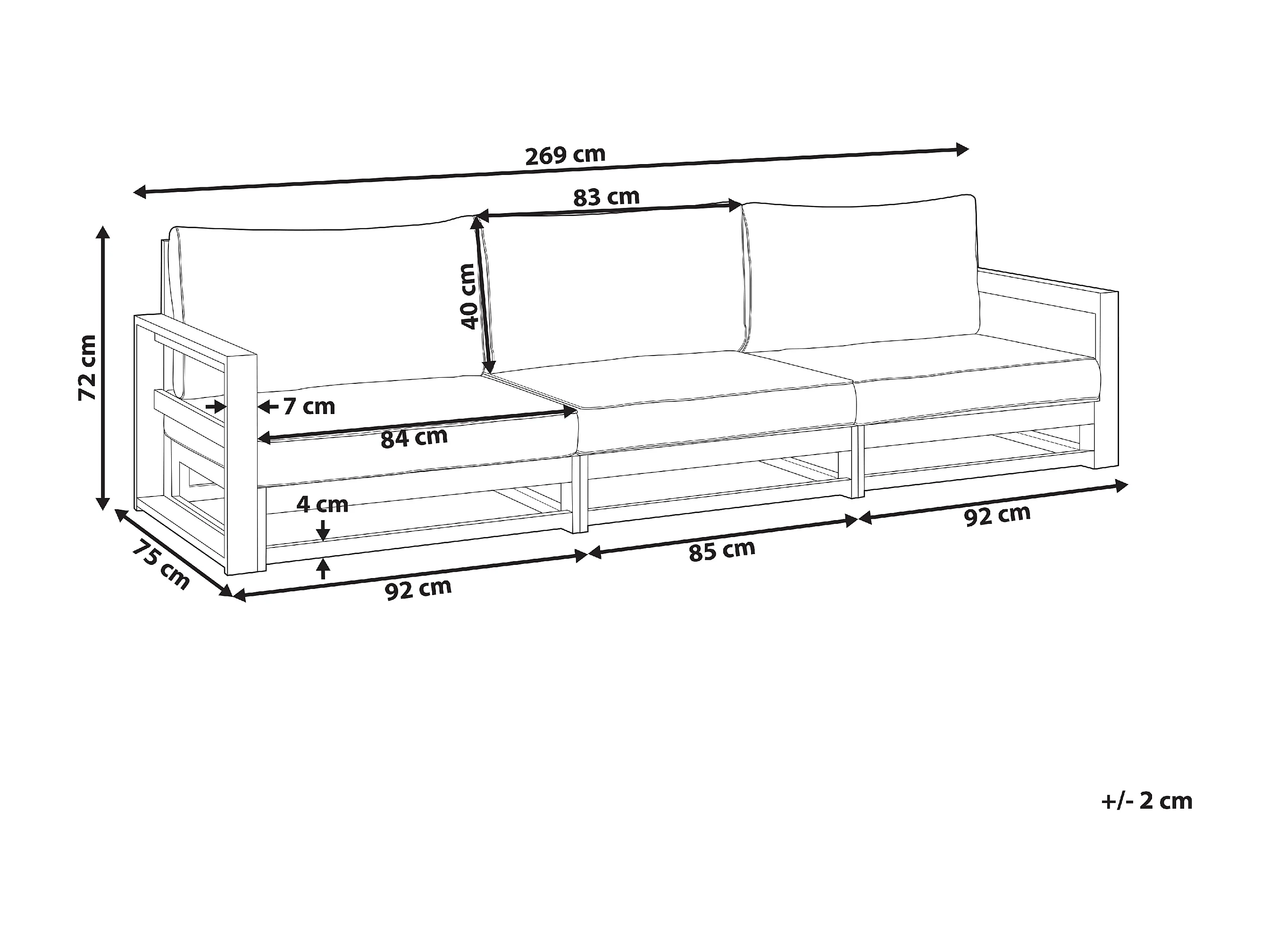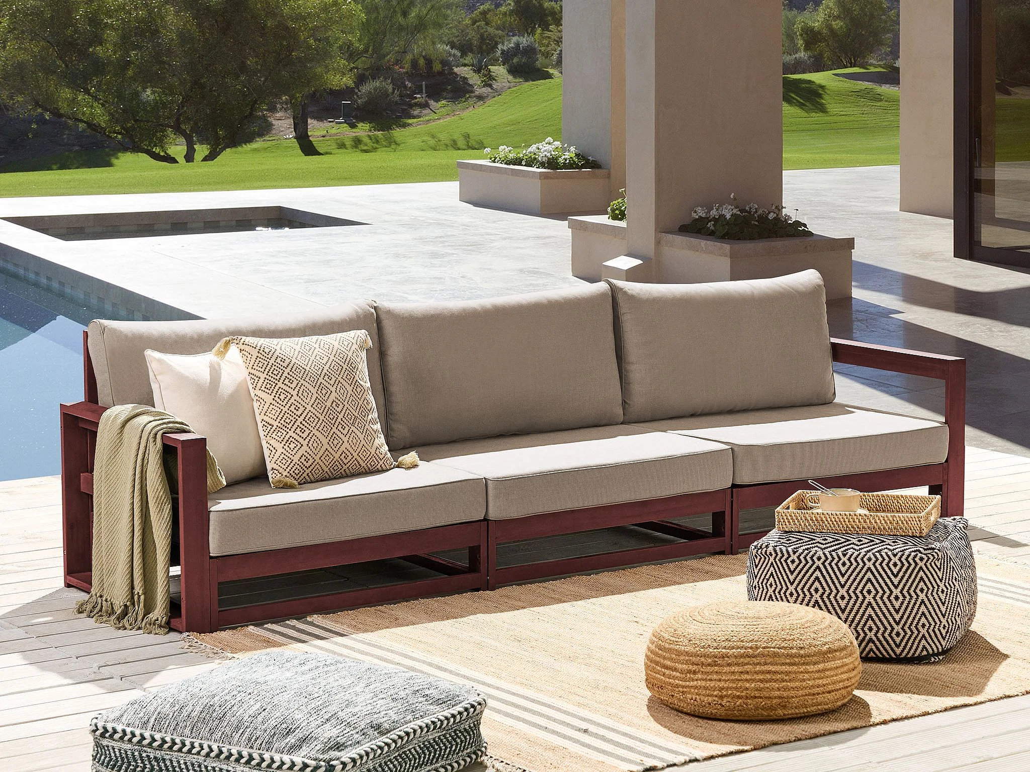 Canapé de jardin 3 places TIMOR Acacia Rouge foncé