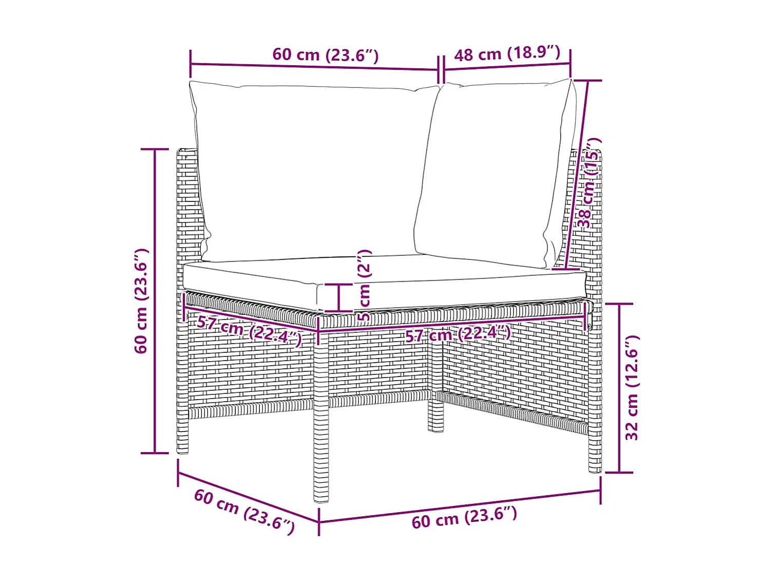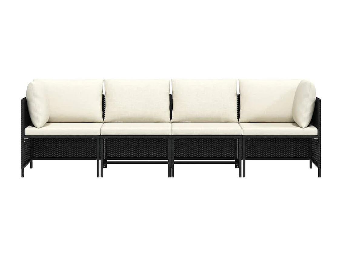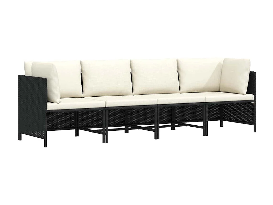 Canapé de jardin à 4 places avec coussins Noir Résine tressée