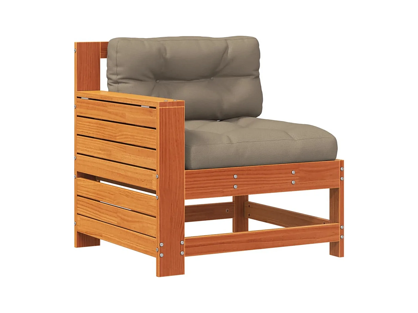 Canapé de jardin accoudoir coussins marron bois pin massif