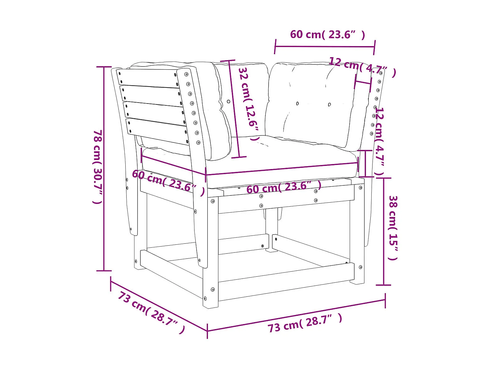 Canapé d'angle de jardin 73x73x78 bois pin massif
