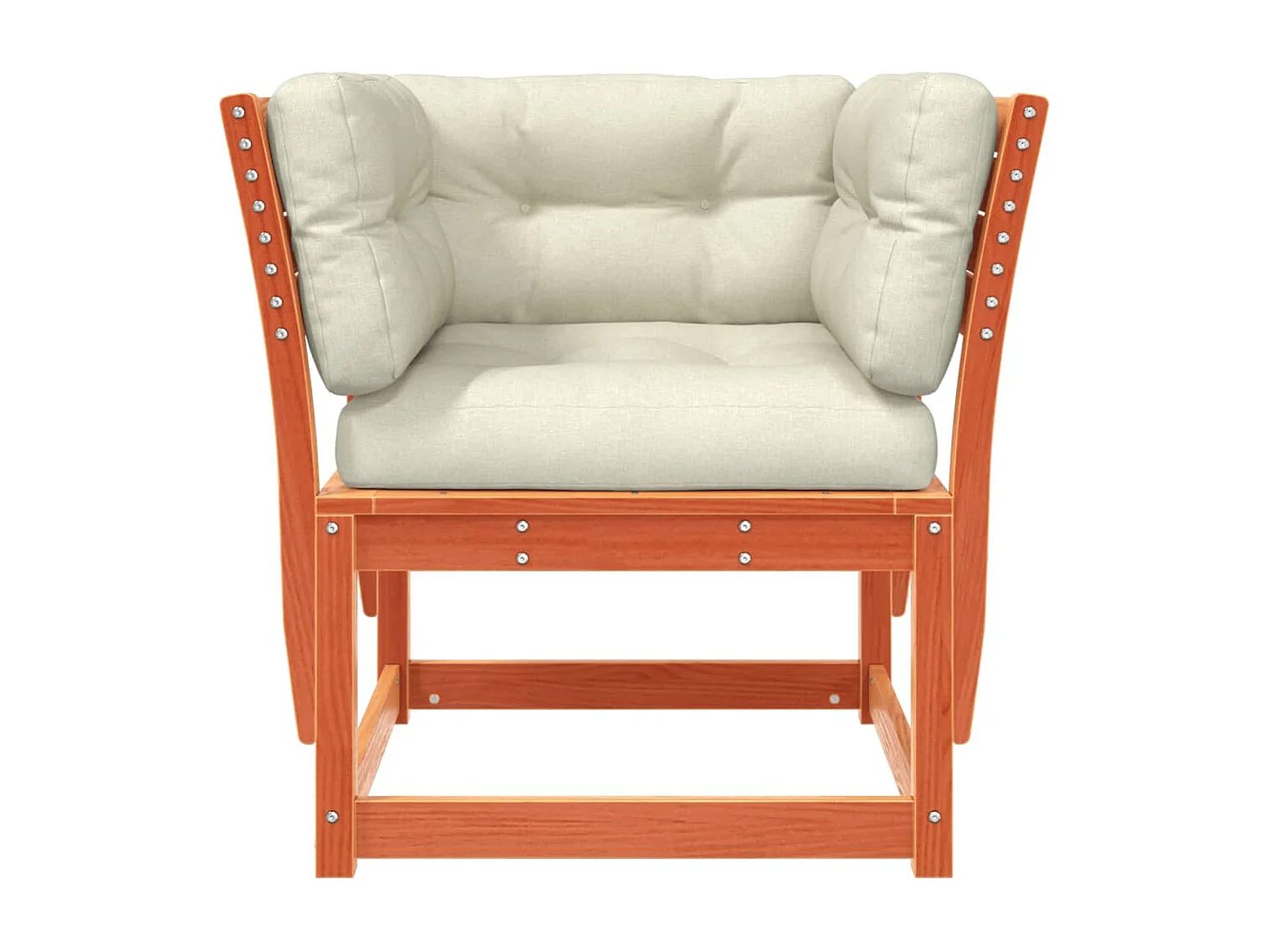 Canapé de jardin accoudoirs et coussins cire marron massif pin