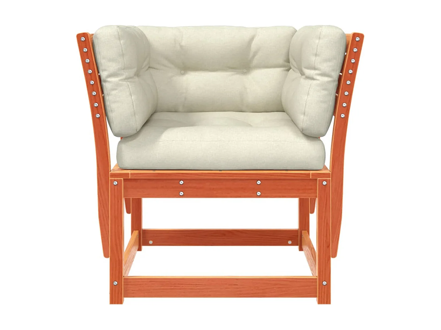 Canapé de jardin accoudoirs et coussins marron massif pin