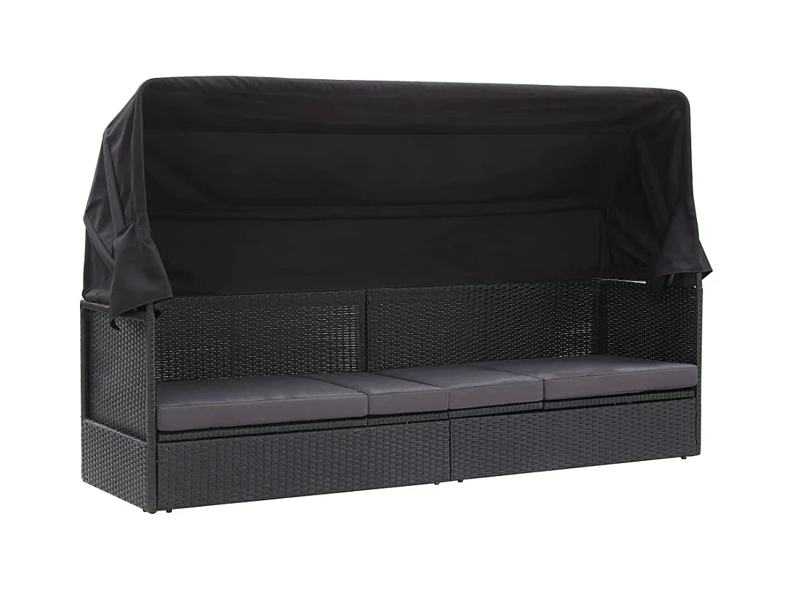 Canapé de jardin avec auvent Résine tressée Noir REO82759