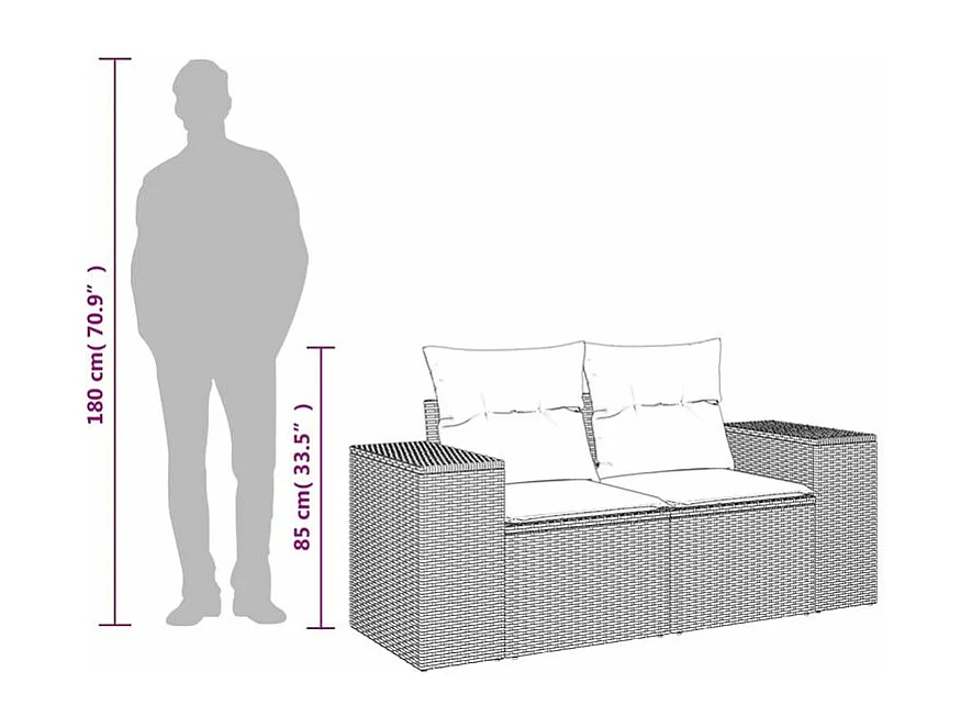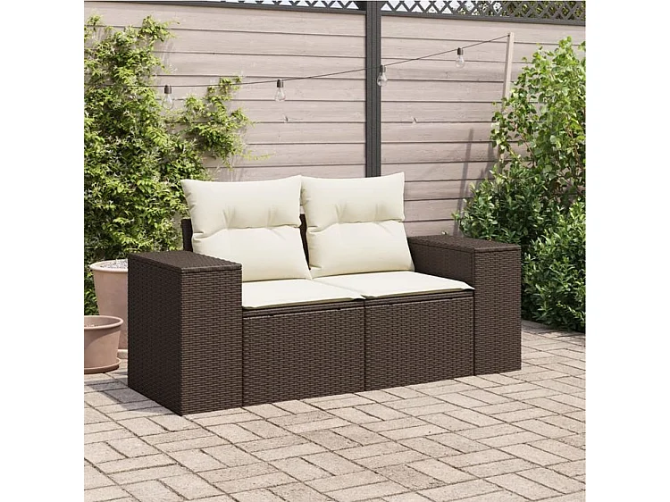 Canapé de jardin avec coussins 2 places marron résine tressée