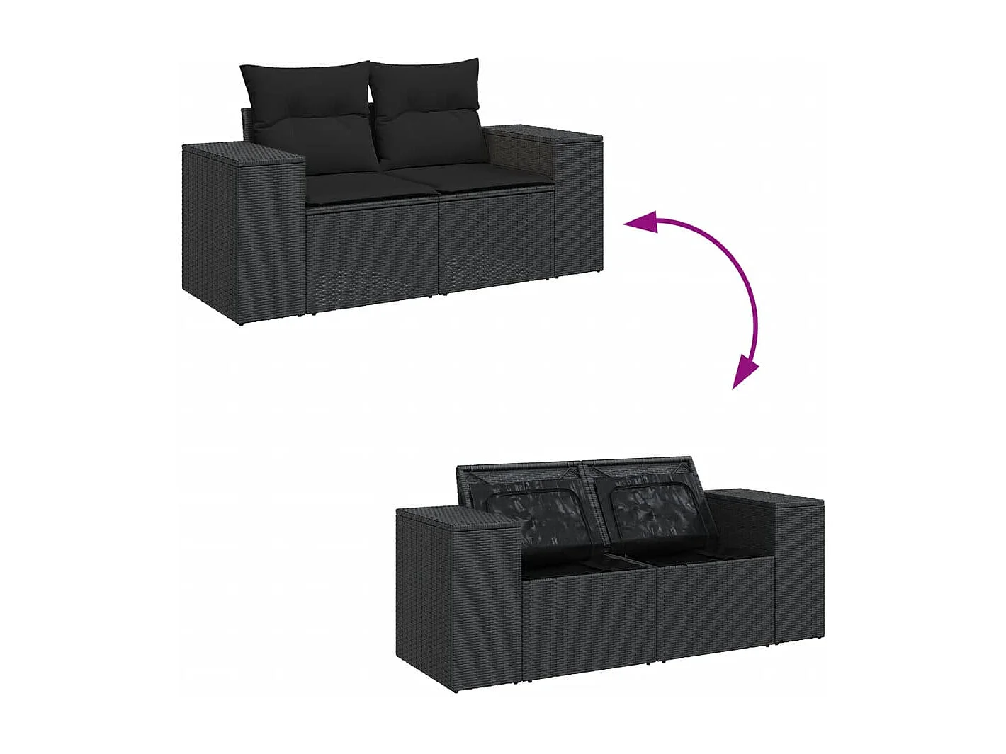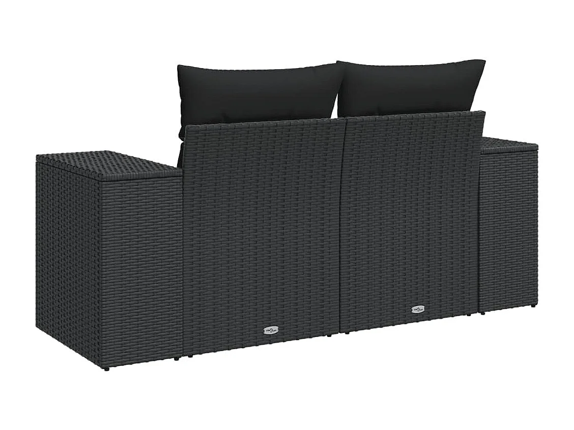 Canapé de jardin avec coussins 2 places noir résine tressée