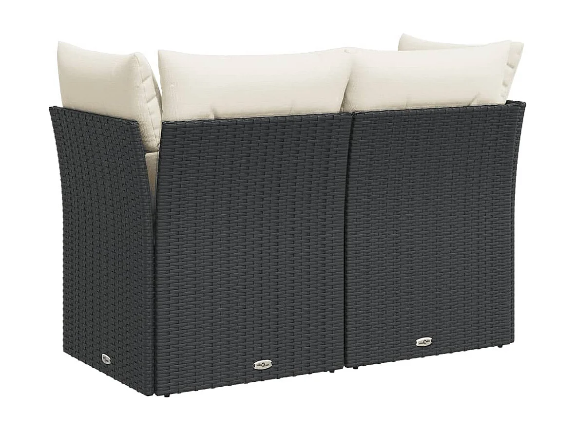 Canapé de jardin avec coussins 2 places noir résine tressée