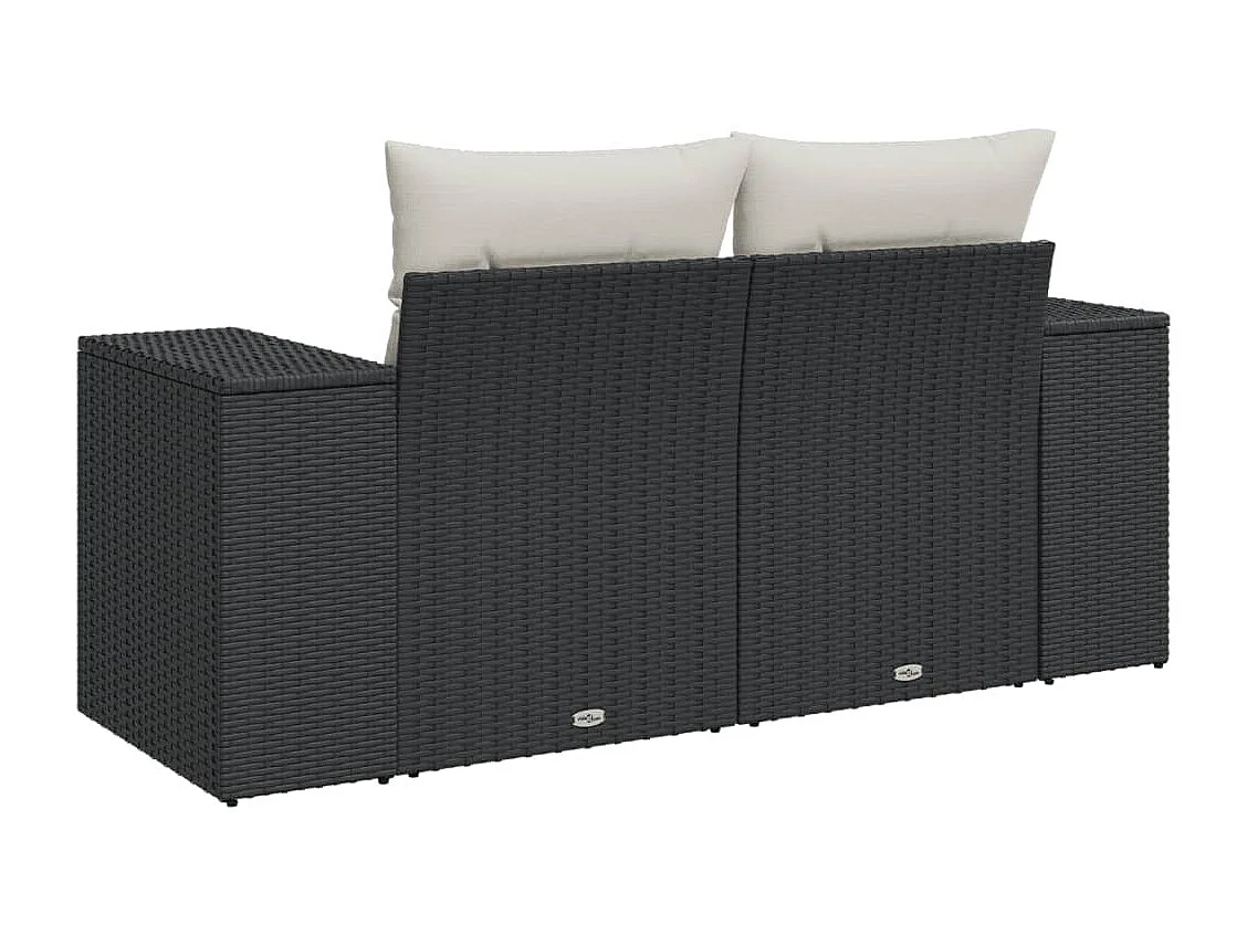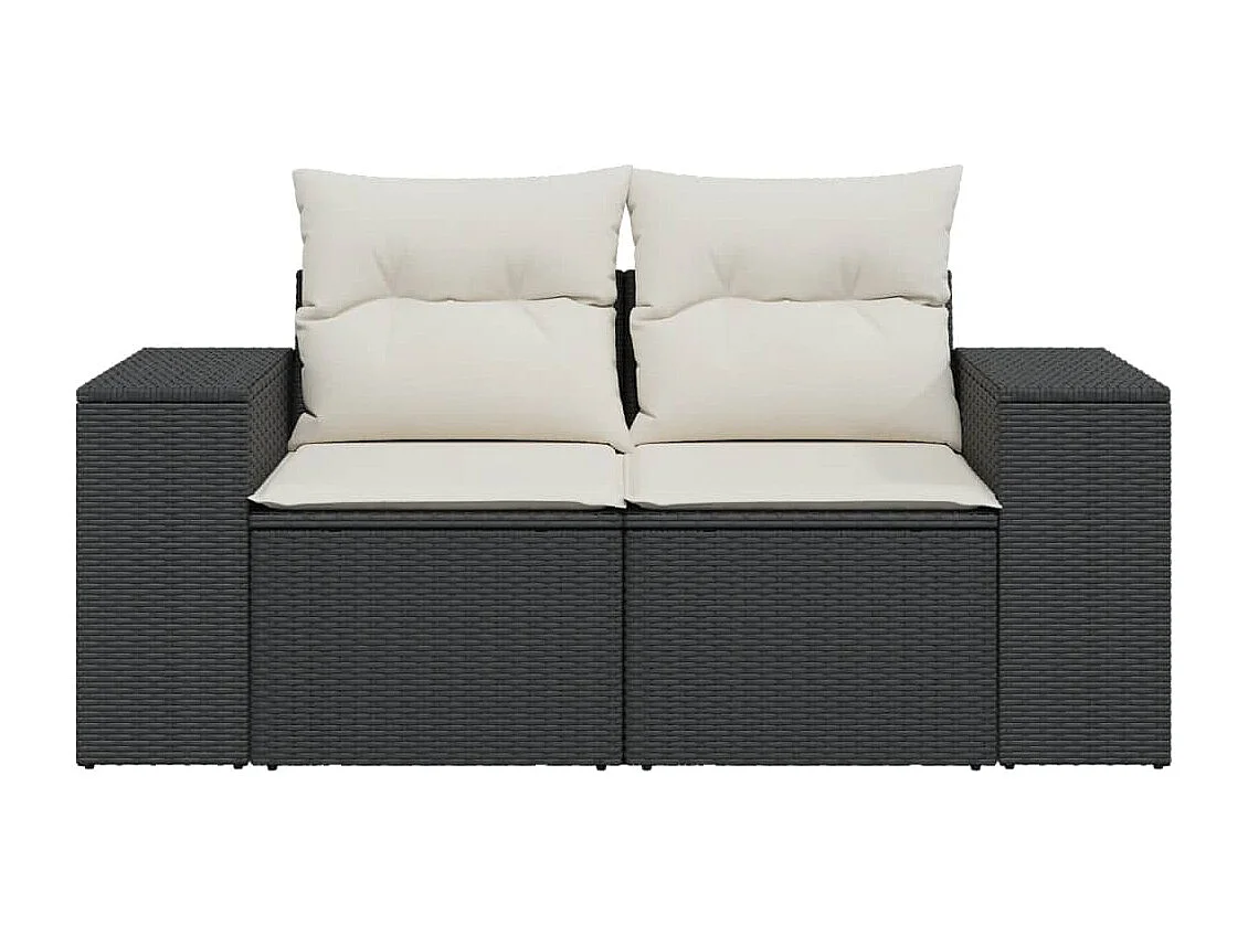 Canapé de jardin avec coussins 2 places noir résine tressée