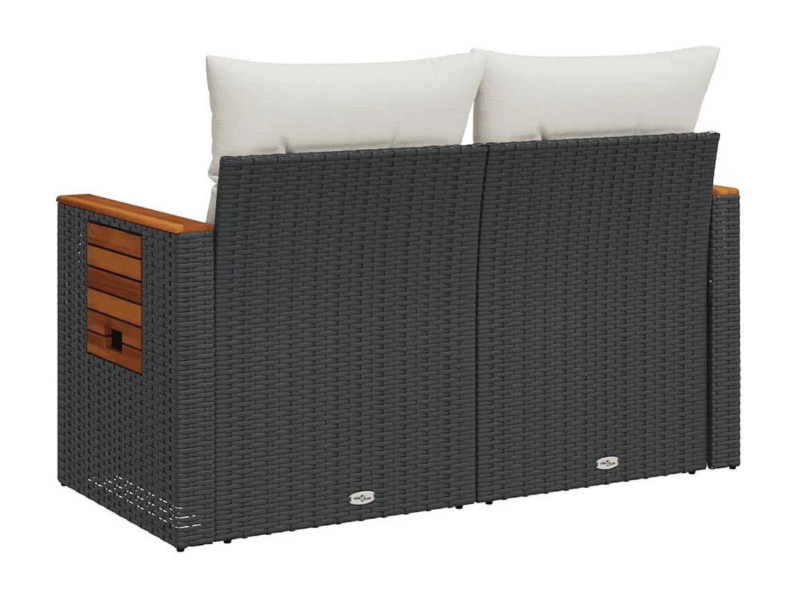Canapé de jardin avec coussins 2 places noir résine tressée