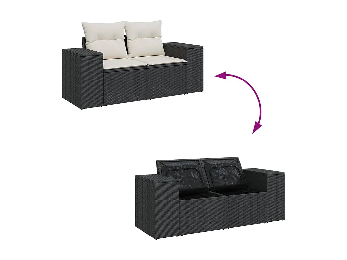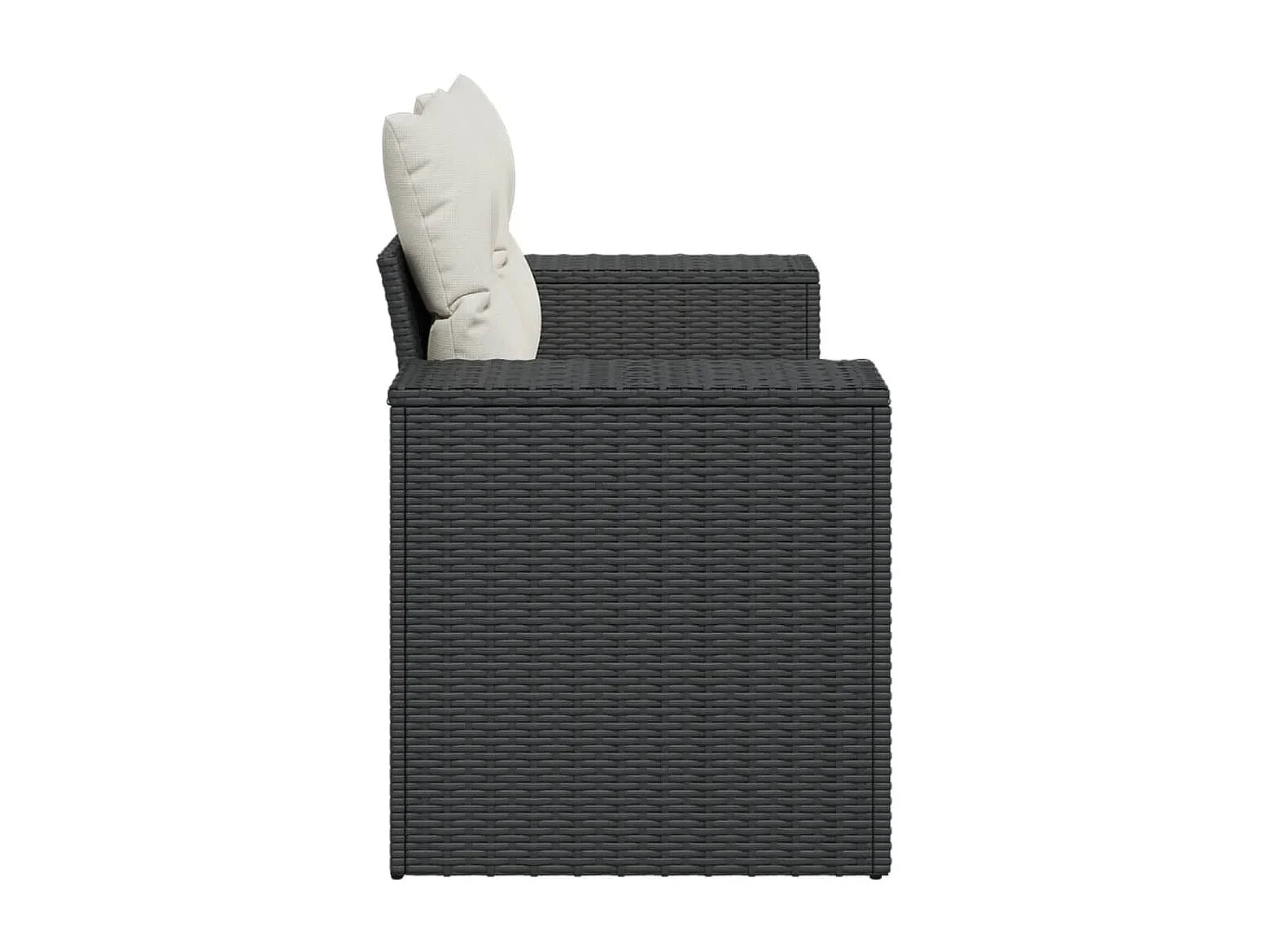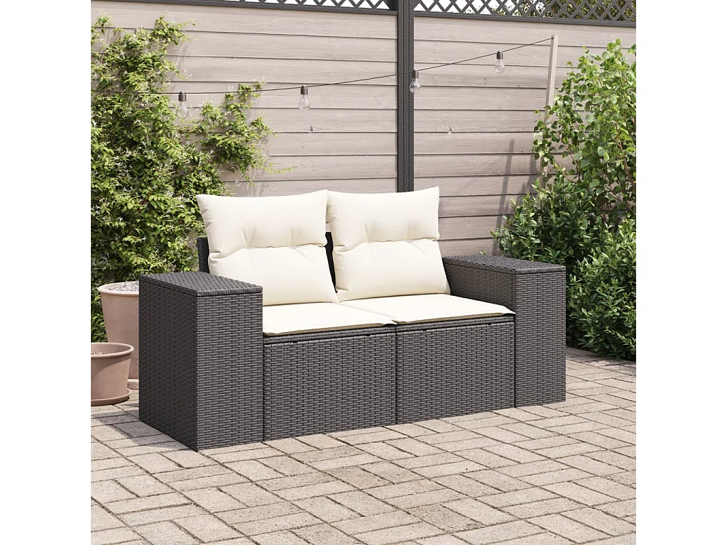 Canapé de jardin avec coussins 2 places noir résine tressée