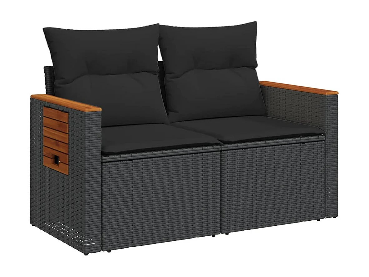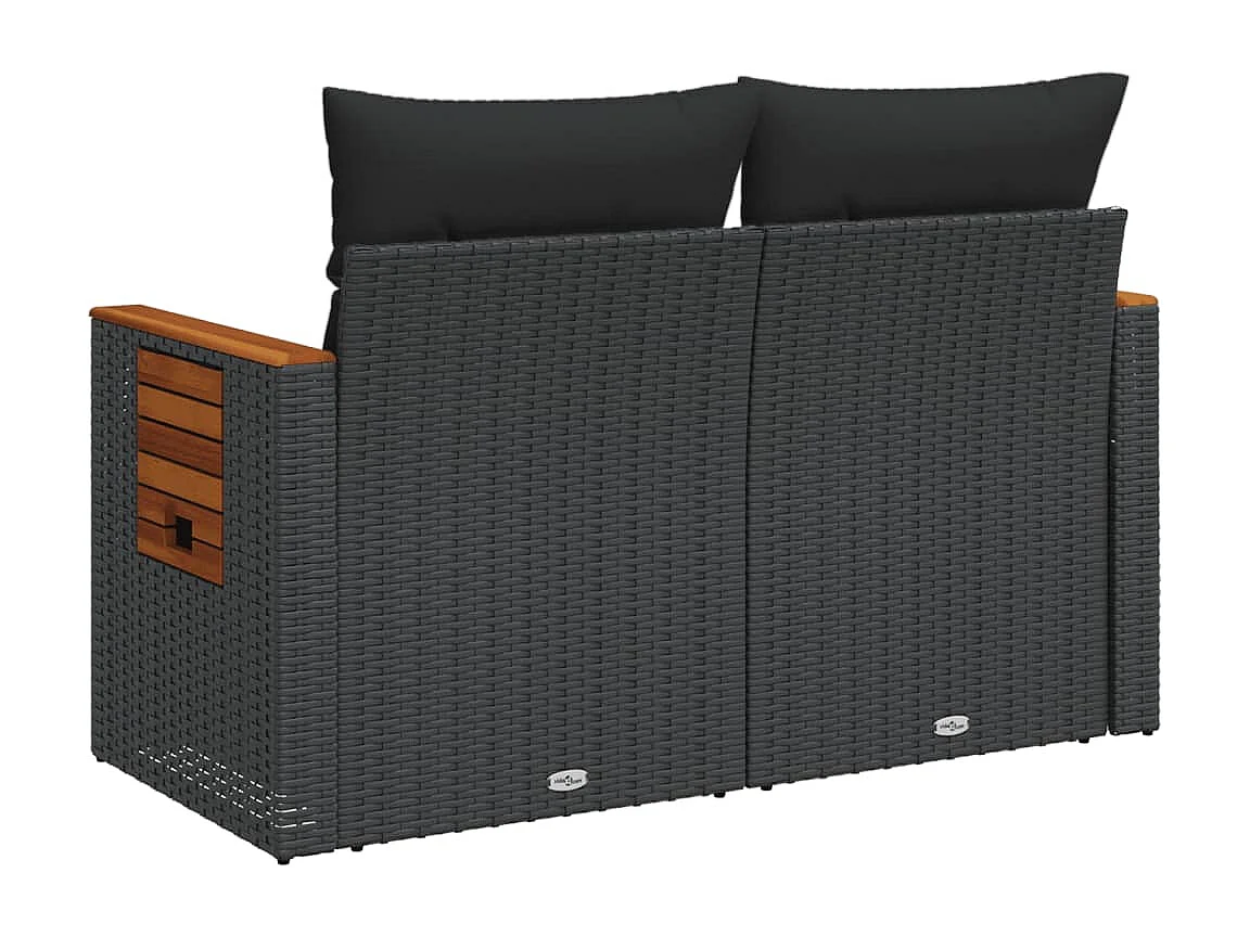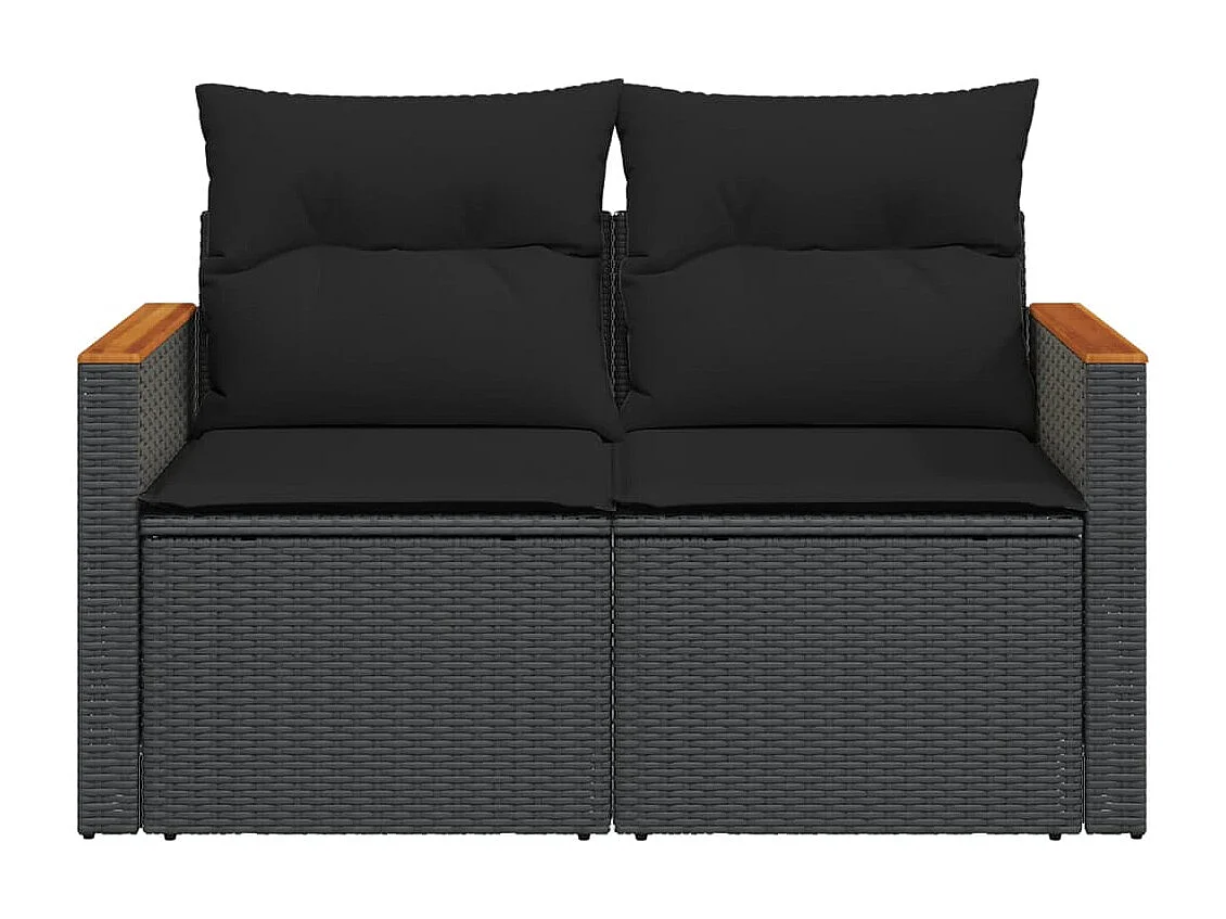 Canapé de jardin avec coussins 2 places noir résine tressée