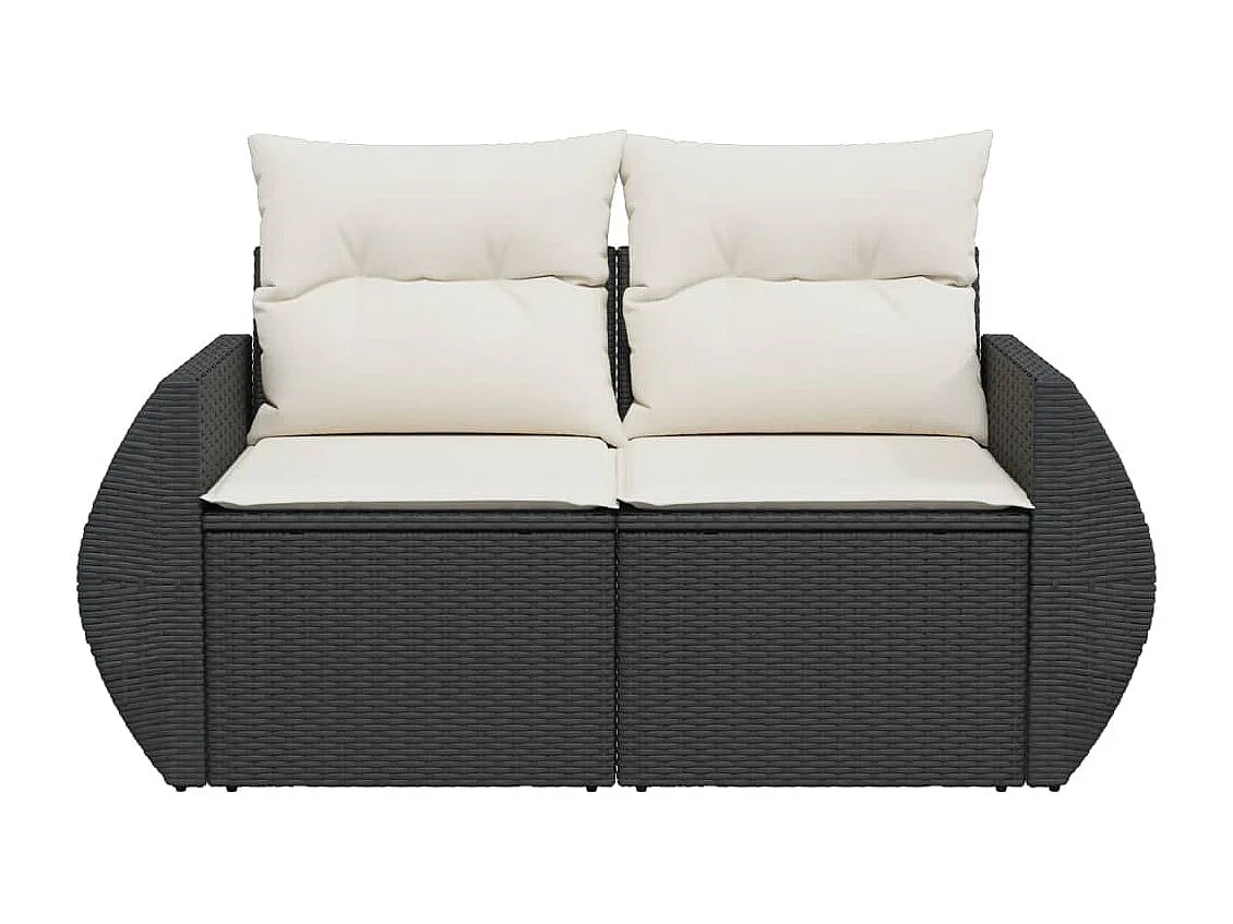 Canapé de jardin avec coussins 2 places noir résine tressée