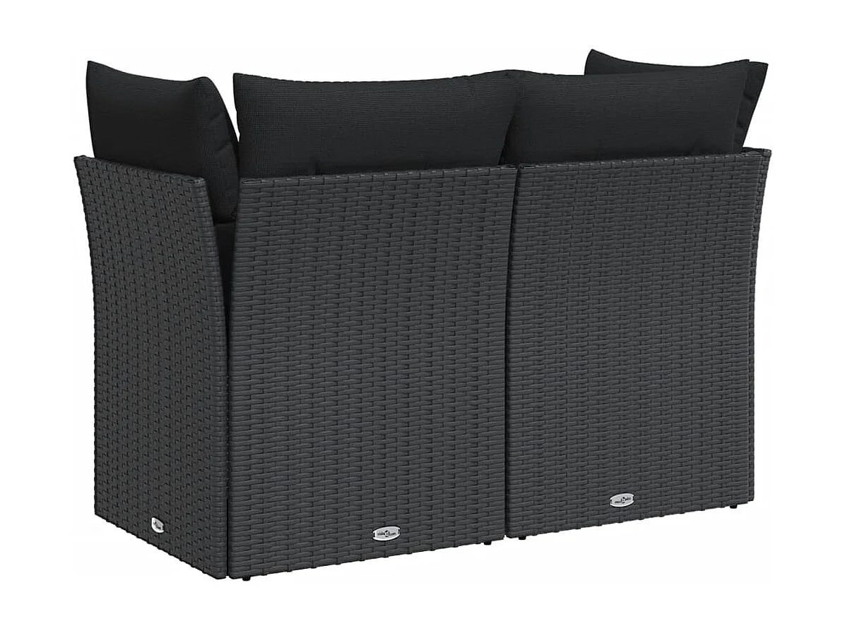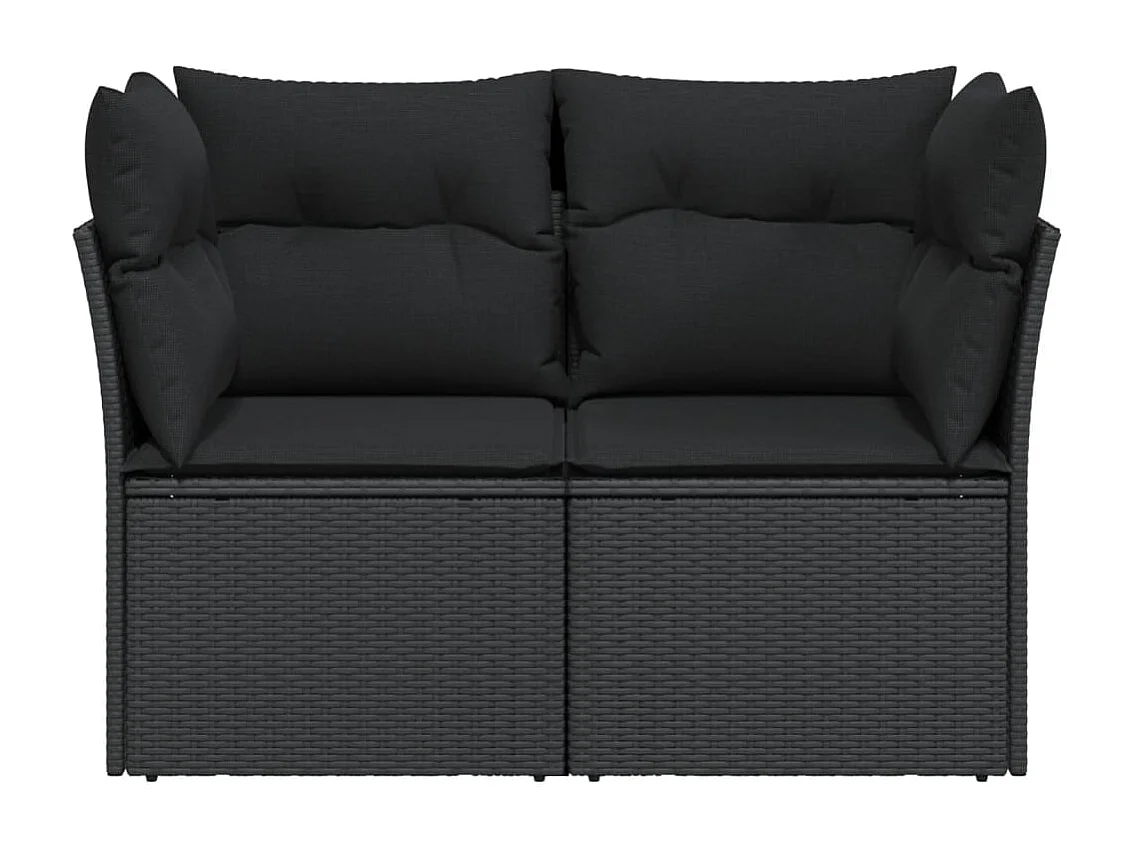 Canapé de jardin avec coussins 2 places noir résine tressée