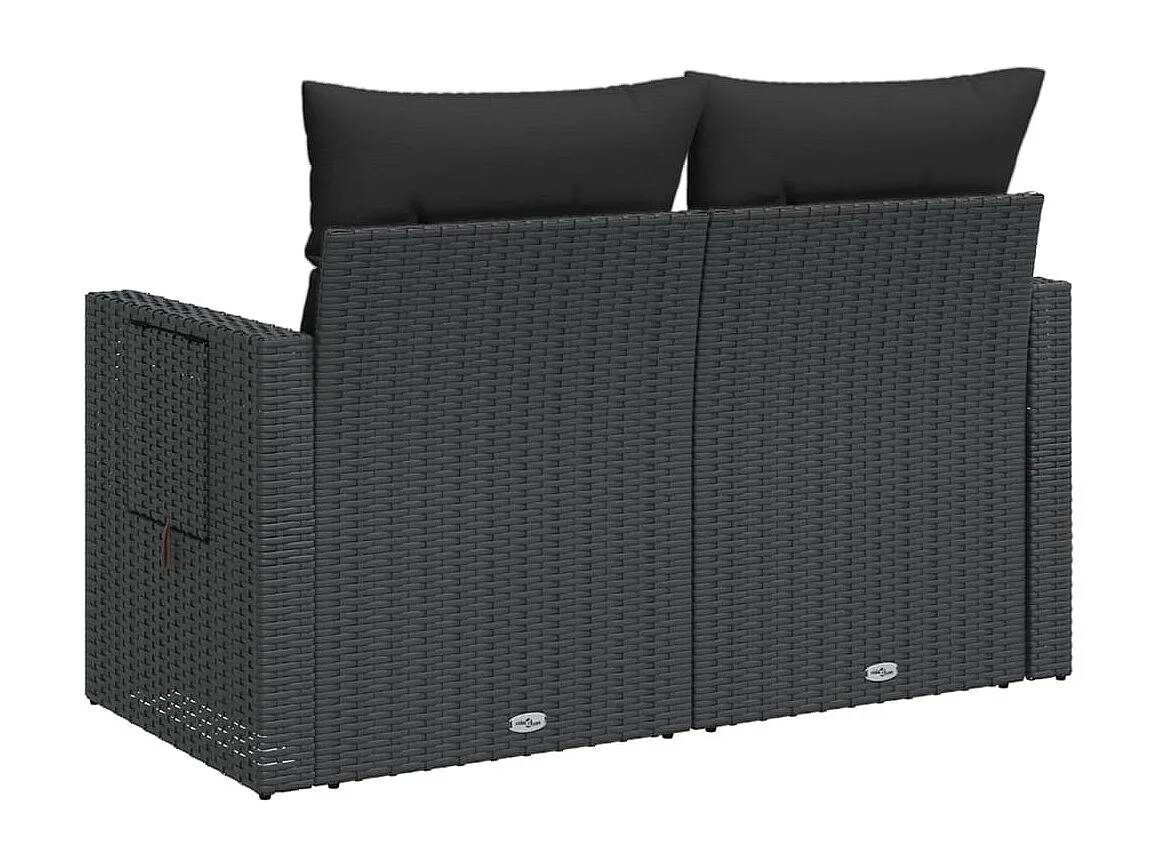 Canapé de jardin avec coussins 2 places noir résine tressée