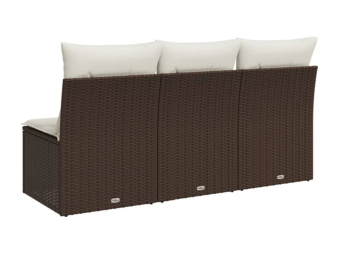 Canapé de jardin avec coussins 3 places brun résine tressée