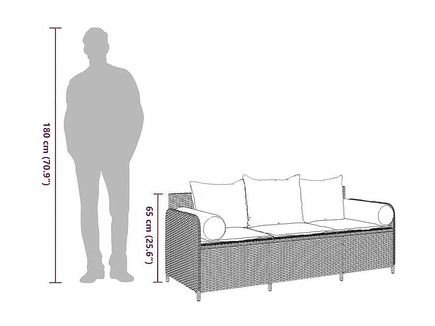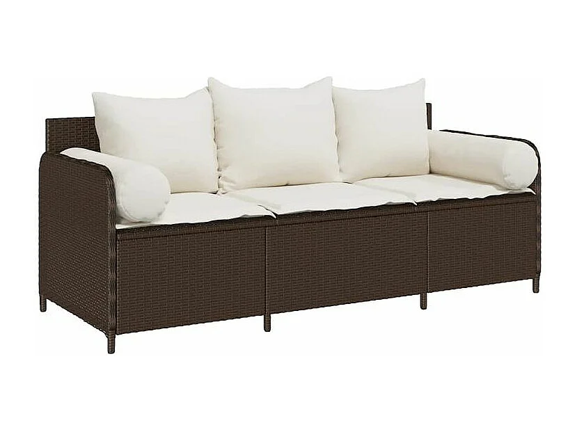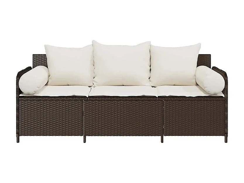 Canapé de jardin avec coussins 3 places brun résine tressée