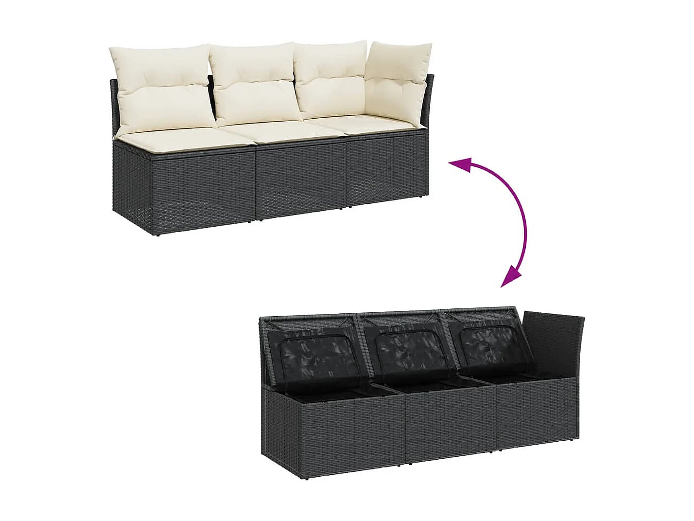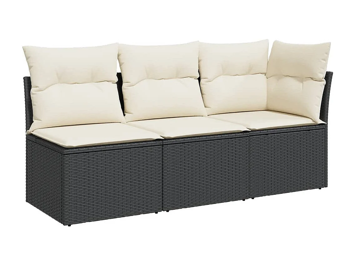 Canapé de jardin avec coussins 3 places noir résine tressée