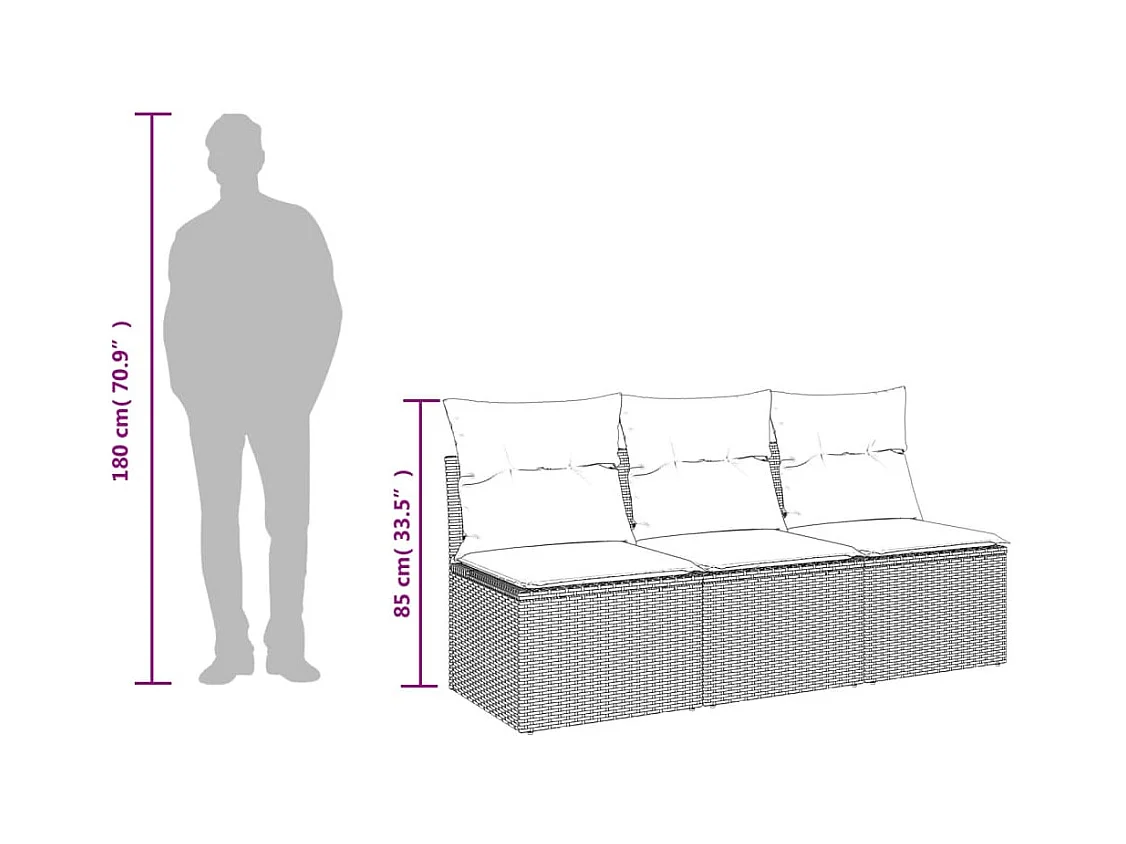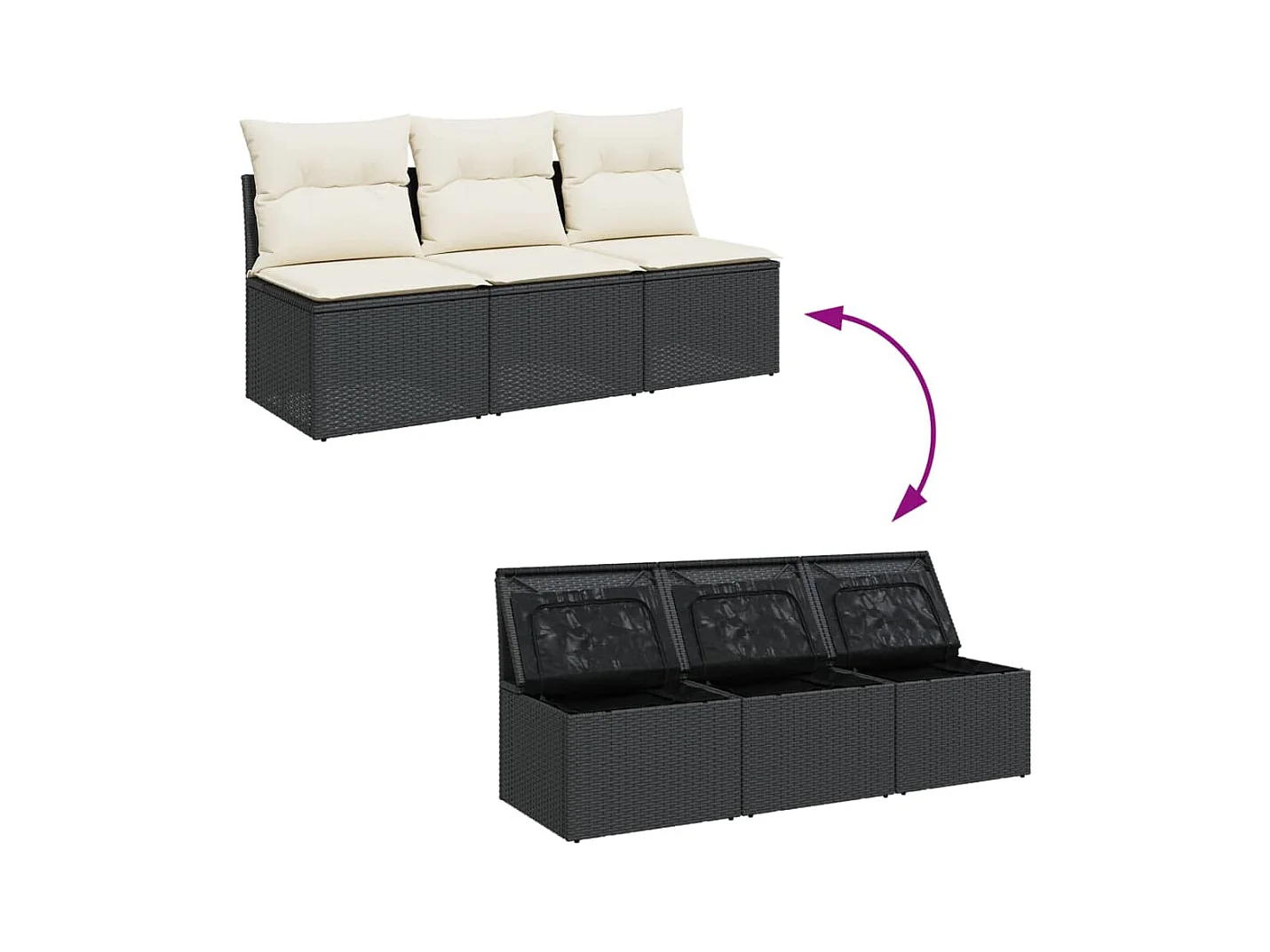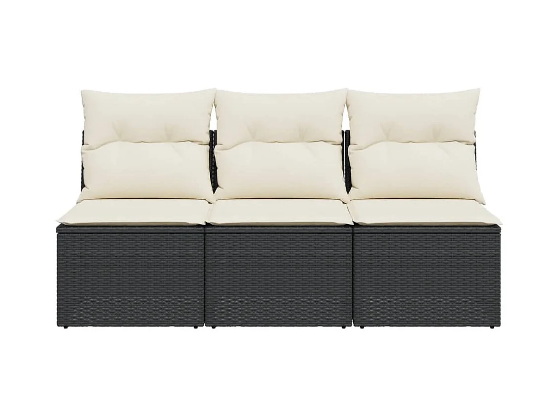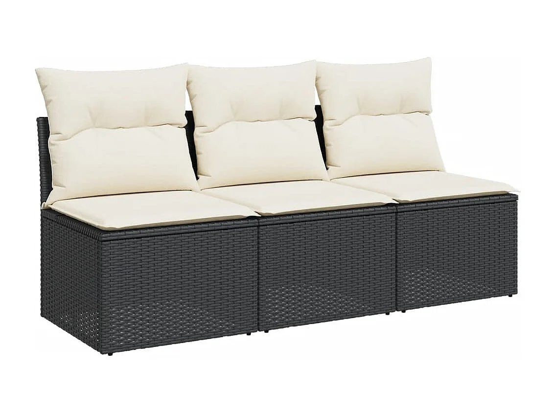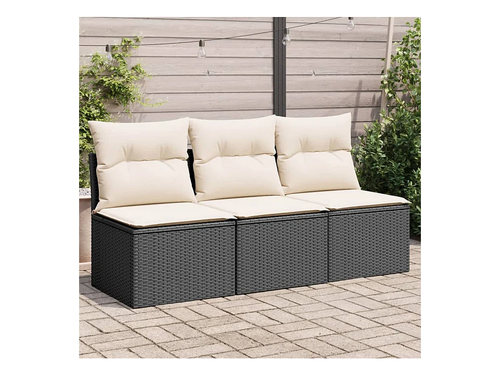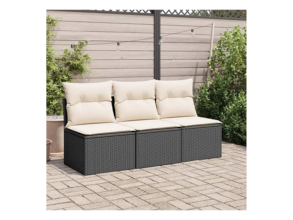 Canapé de jardin avec coussins 3 places noir résine tressée