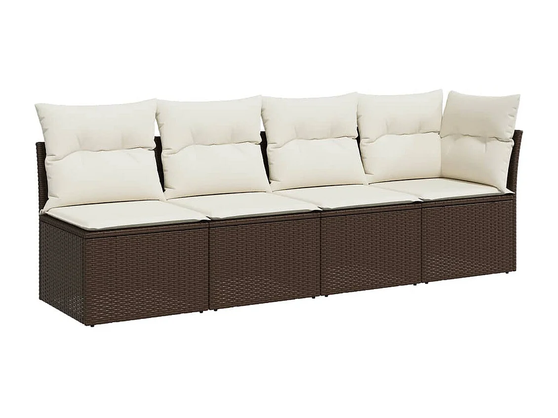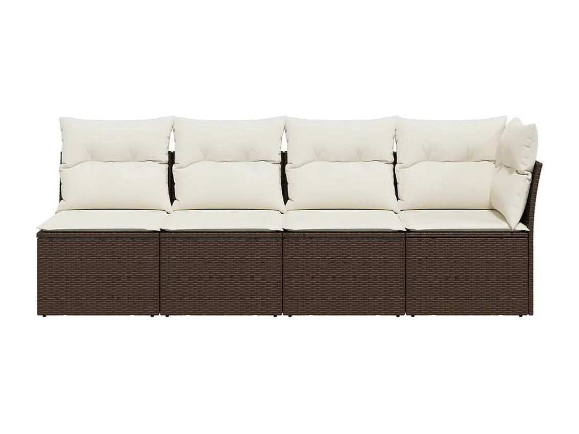 Canapé de jardin avec coussins 4 places marron résine tressée