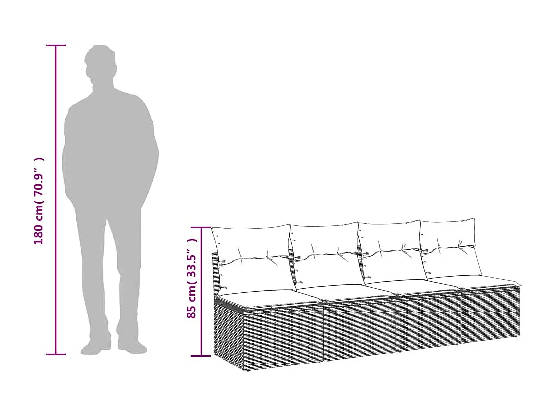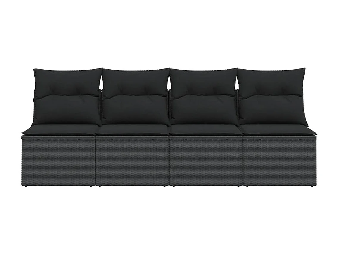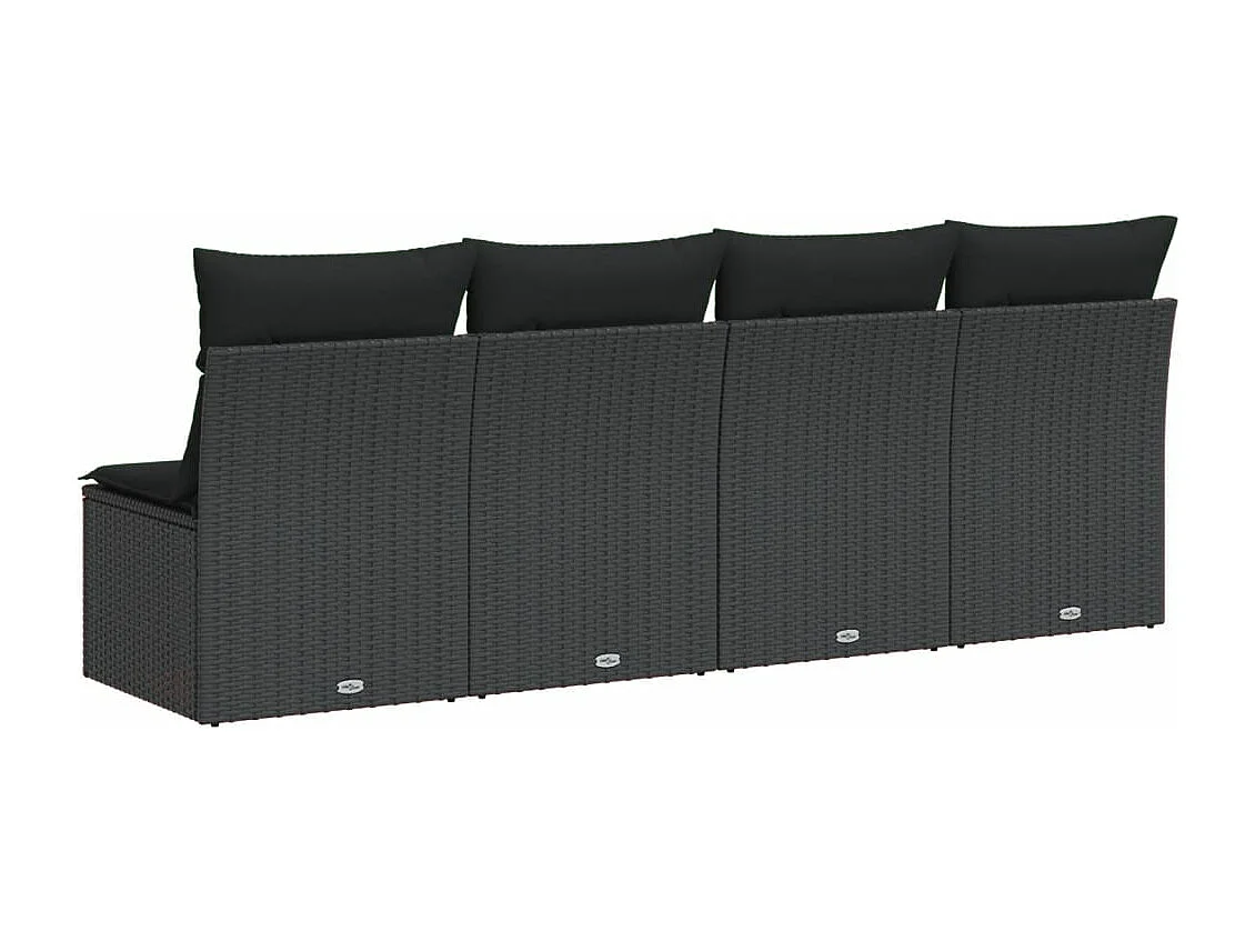 Canapé de jardin avec coussins 4 places noir résine tressée