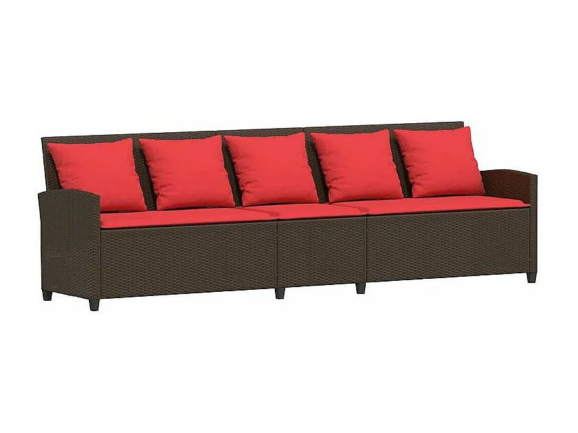Canapé de jardin avec coussins 5 places brun résine tressée