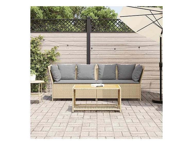 Canapé de jardin avec coussins beige résine tressée
