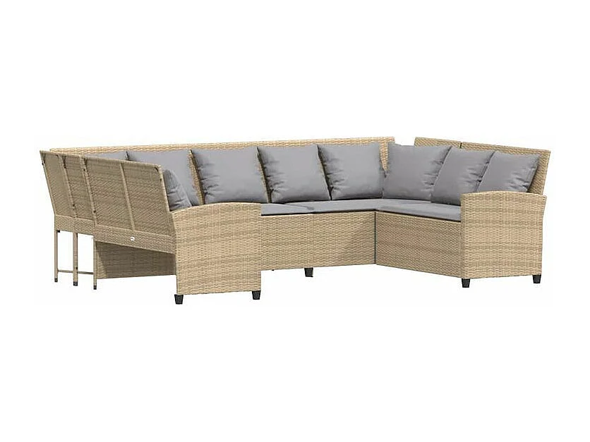 Canapé de jardin avec coussins beige résine tressée