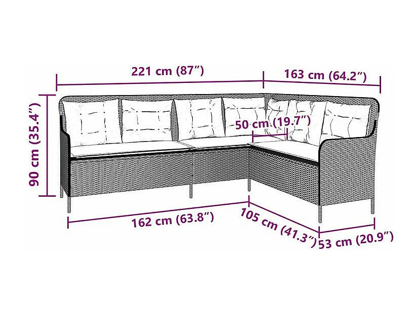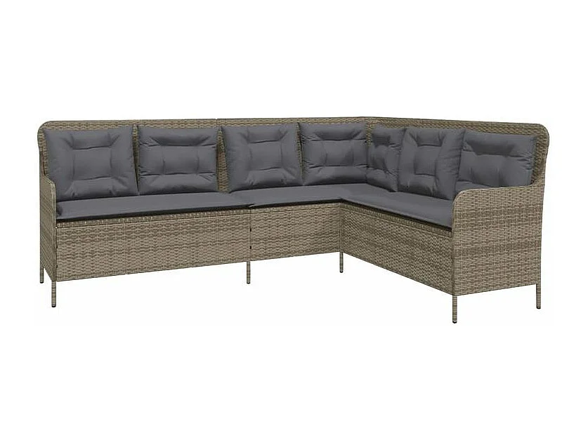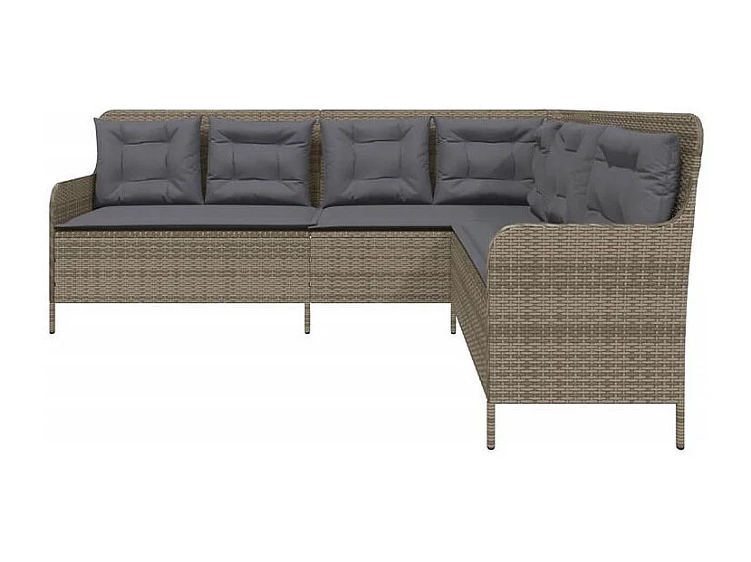 Canapé de jardin avec coussins forme de L gris résine tressée
