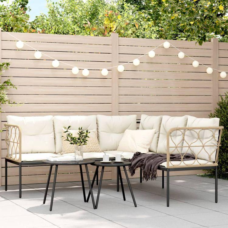 Canapé de jardin avec coussins forme de L noir acier textilène