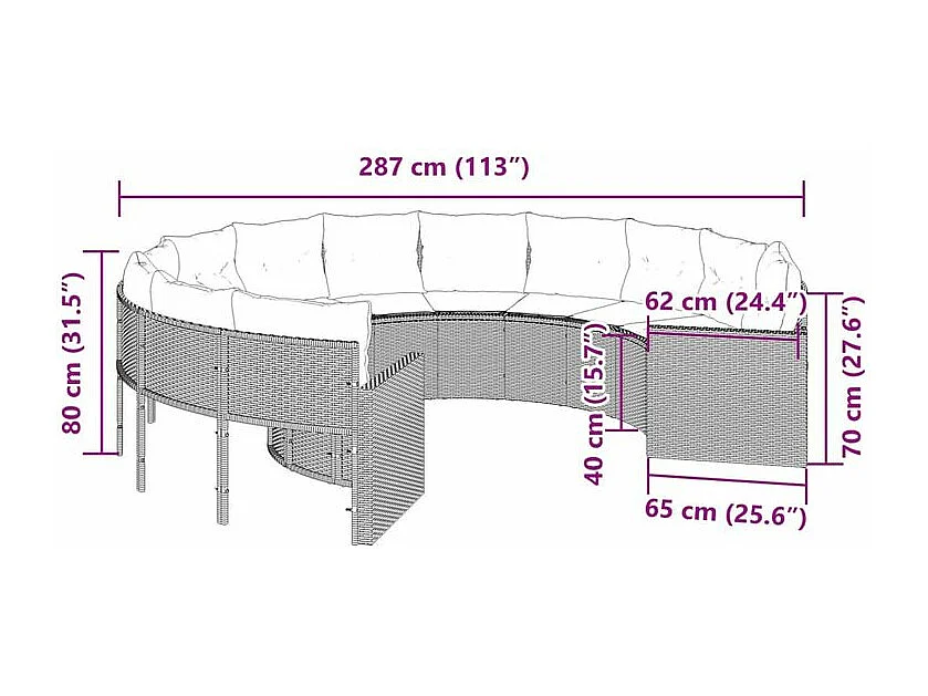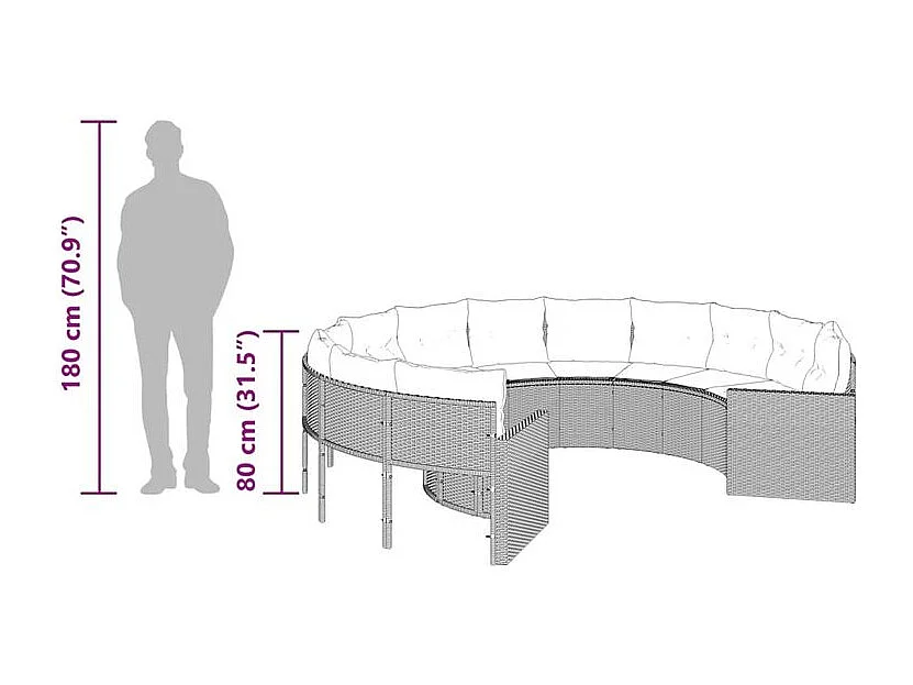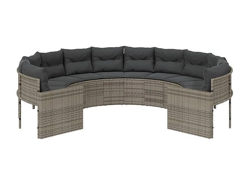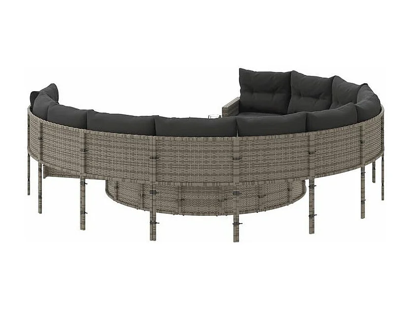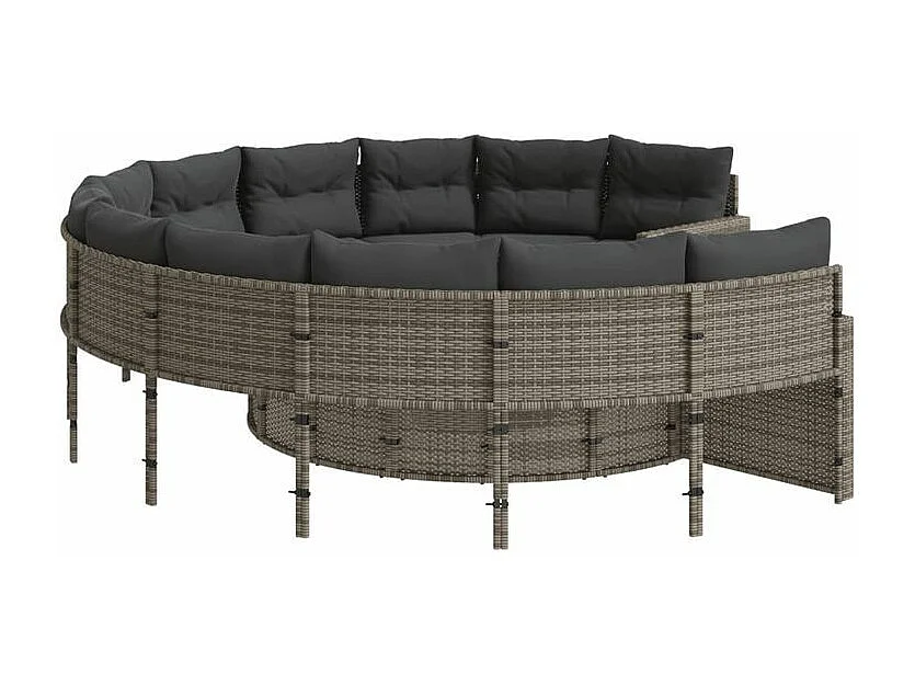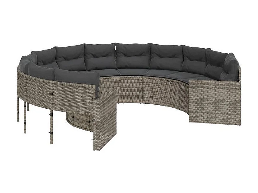 Canapé de jardin avec coussins rond gris résine tressée