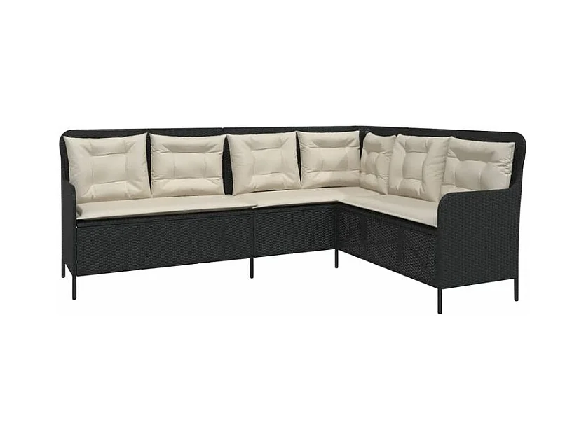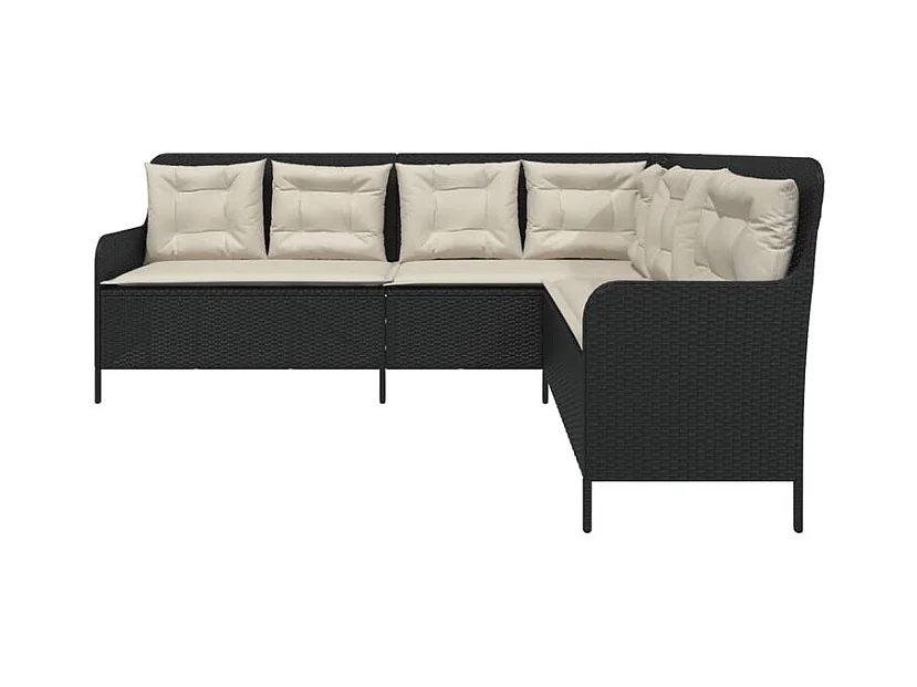 Canapé de jardin et coussins en forme de L noir résine tressée