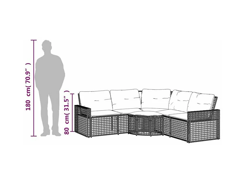 Canapé de jardin et coussins et repose-pied en forme de L rotin