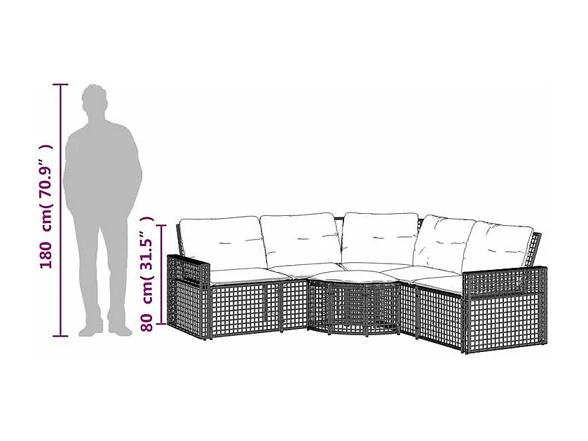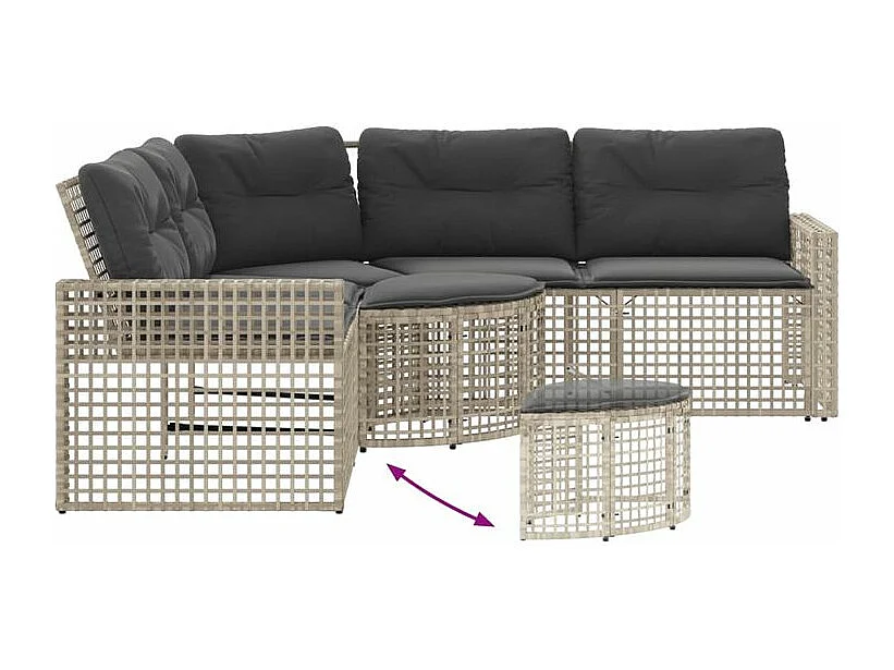 Canapé de jardin et coussins et repose-pied en forme de L rotin