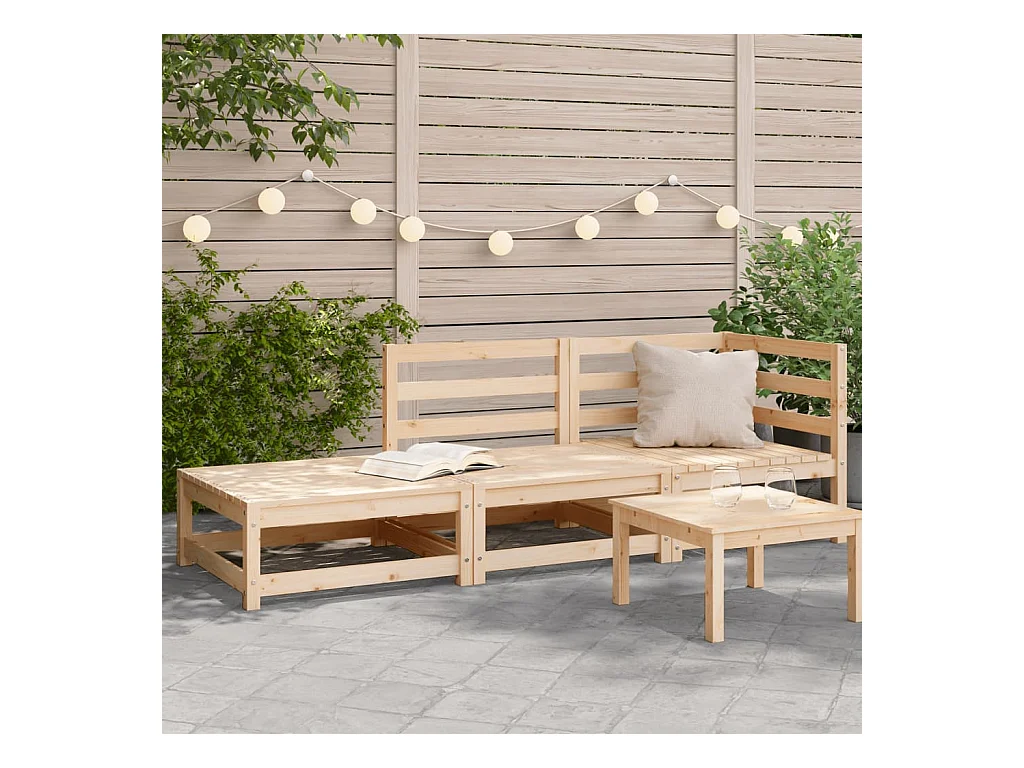 Canapé de jardin et repose-pieds 2 places bois de pin massif