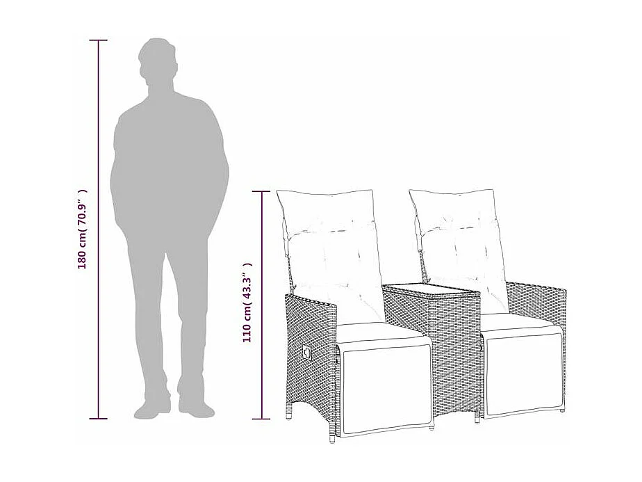 Canapé de jardin inclinable 2 places avec table beige rotin