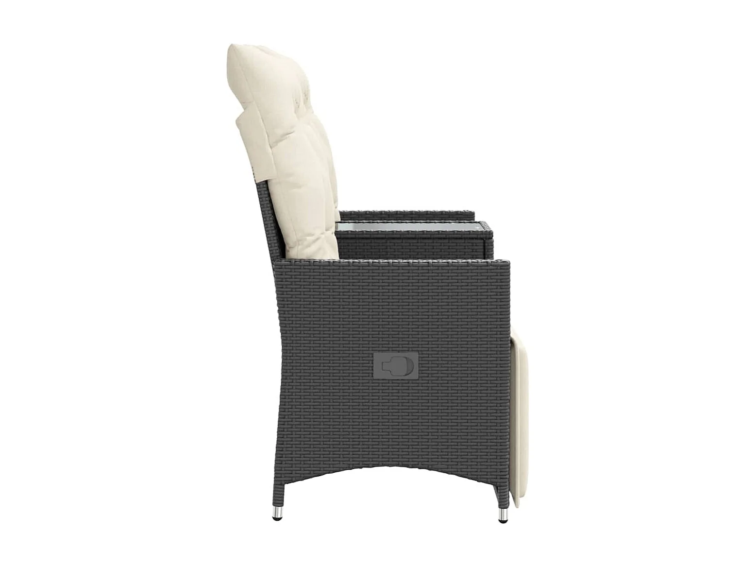 Canapé de jardin inclinable 2 places avec table noir poly rotin