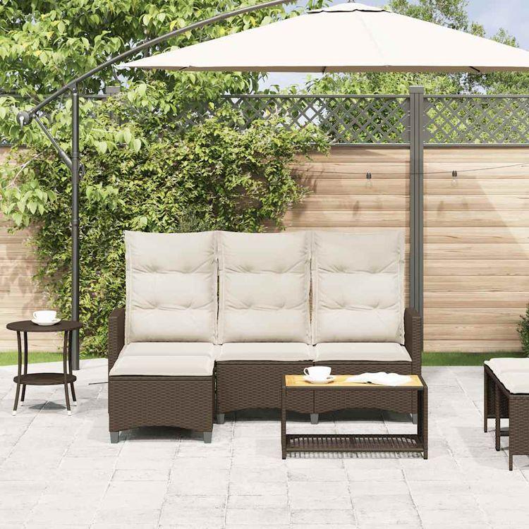 Canapé de jardin inclinable coussins forme L marron polyrotin