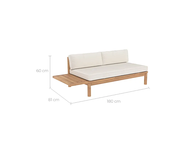 Canapé de jardin 2 places en bois de teck massif et tissu - Nadila