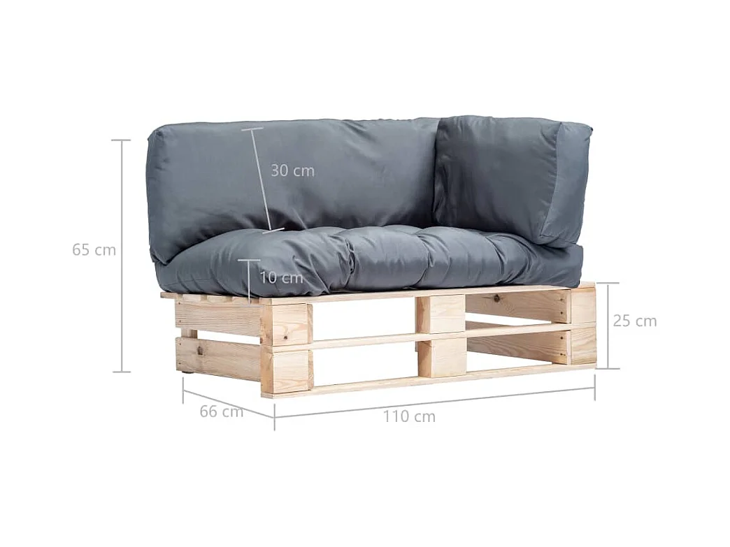 Canapé de jardin palette avec coussins gris Pinède REO36233