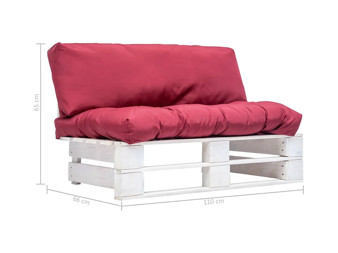 Canapé de jardin palette avec coussins rouge Pinède