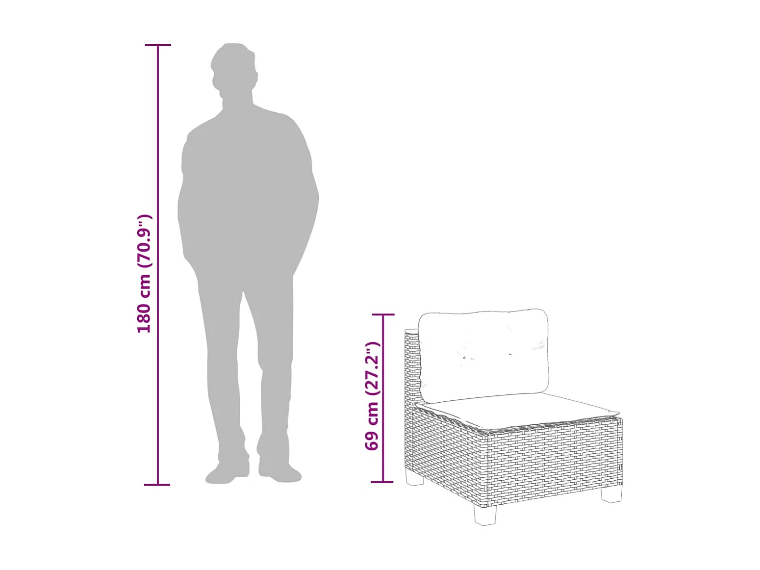 Canapé de jardin sans accoudoirs coussins gris résine tressée