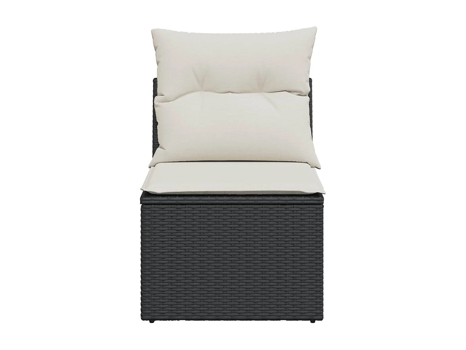 Canapé central de jardin avec coussins Noir Résine tressée FR69031
