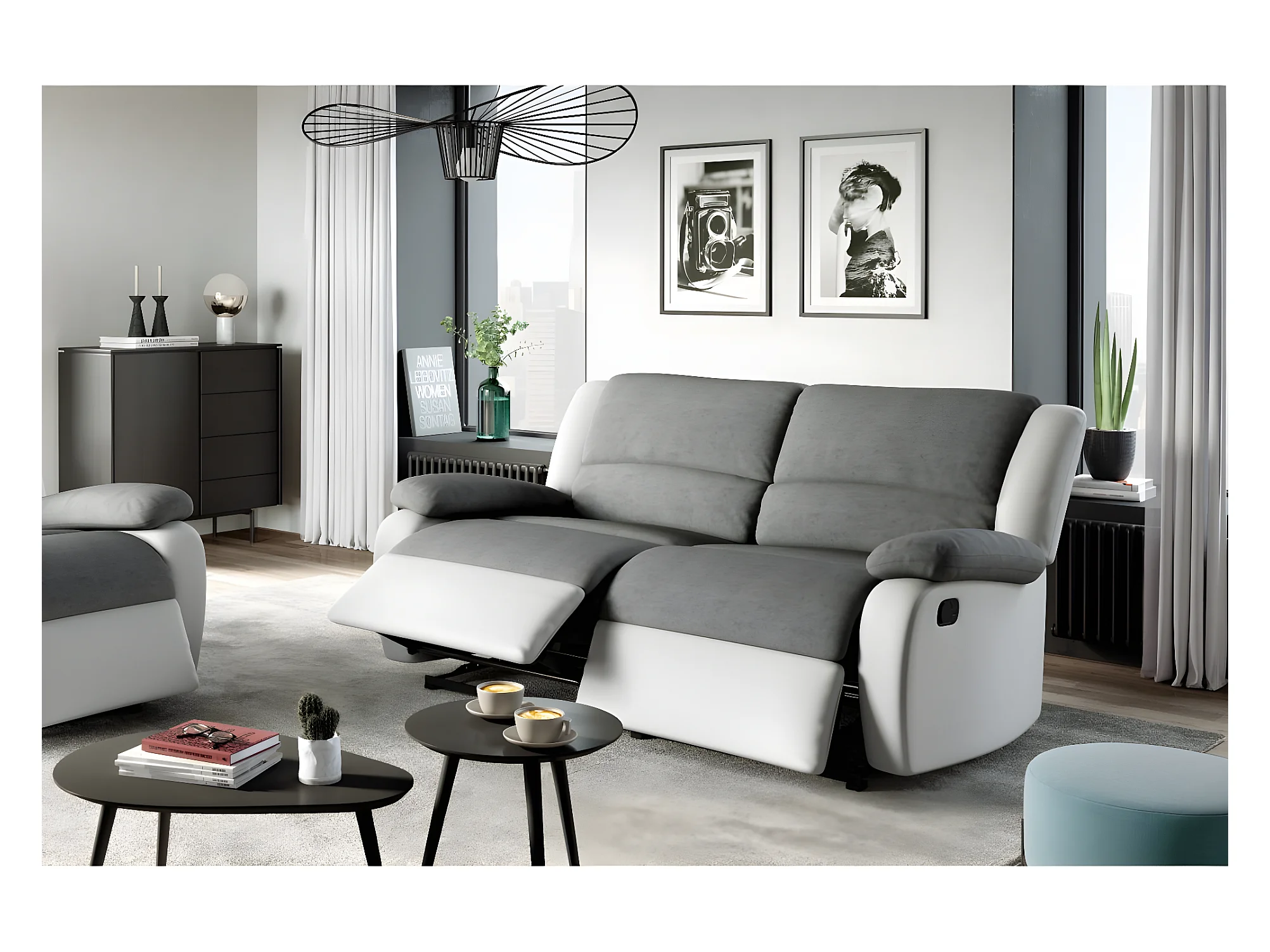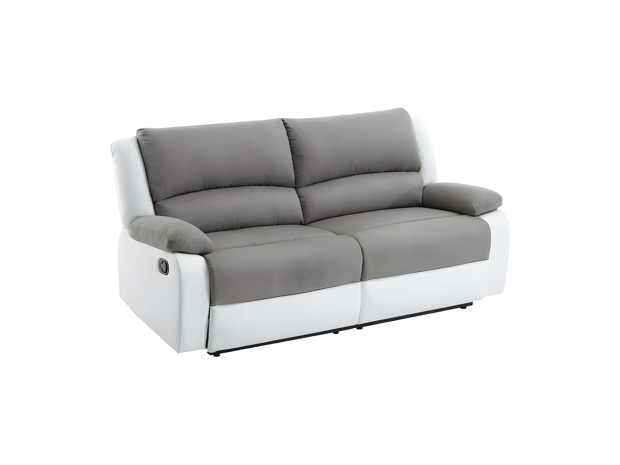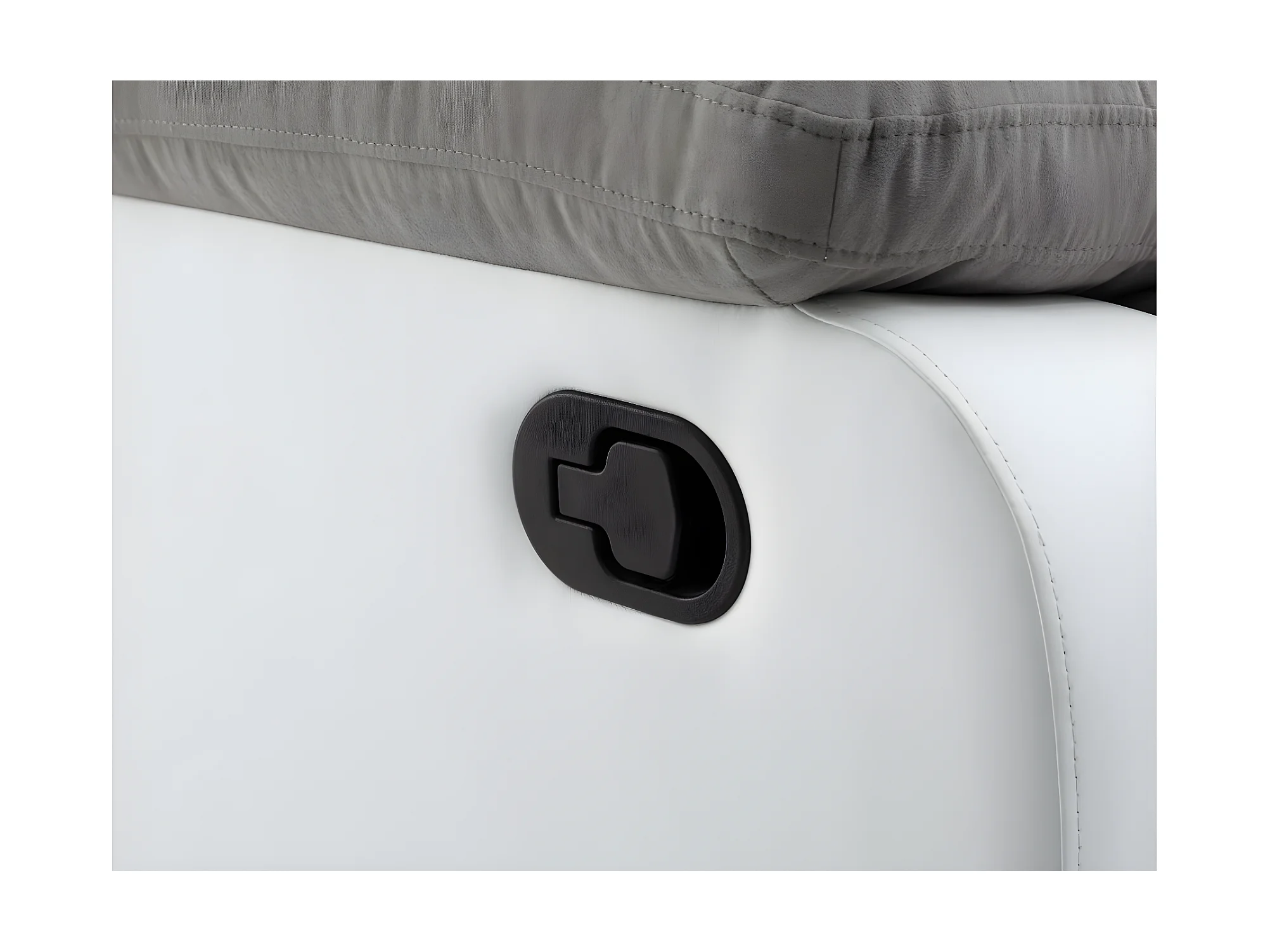 Canapé relax manuel 3 places avec 2 assises XXL Léo en microfibre et simili - Blanc/Gris - L193 x P93 x H96cm - Loungitude