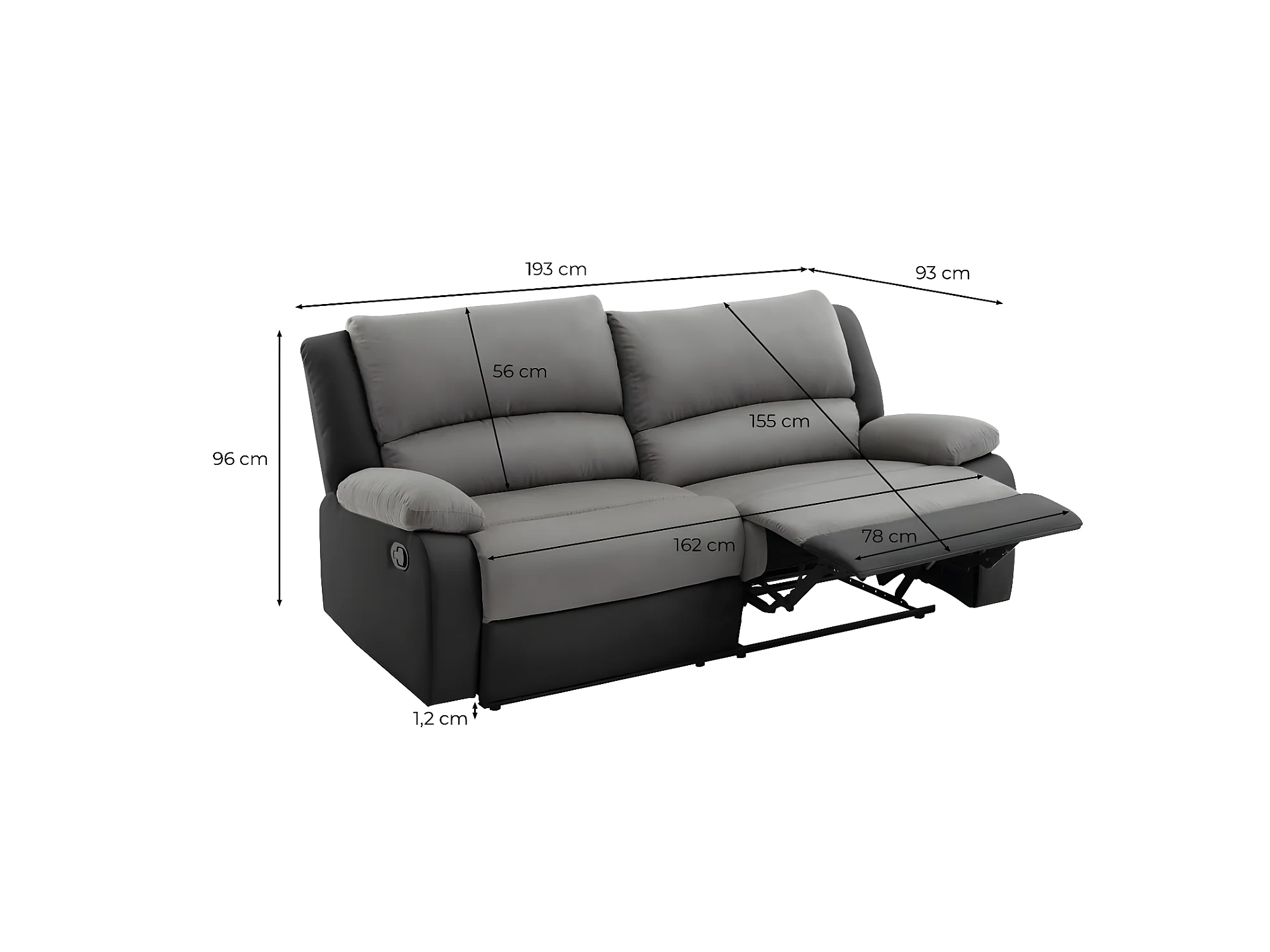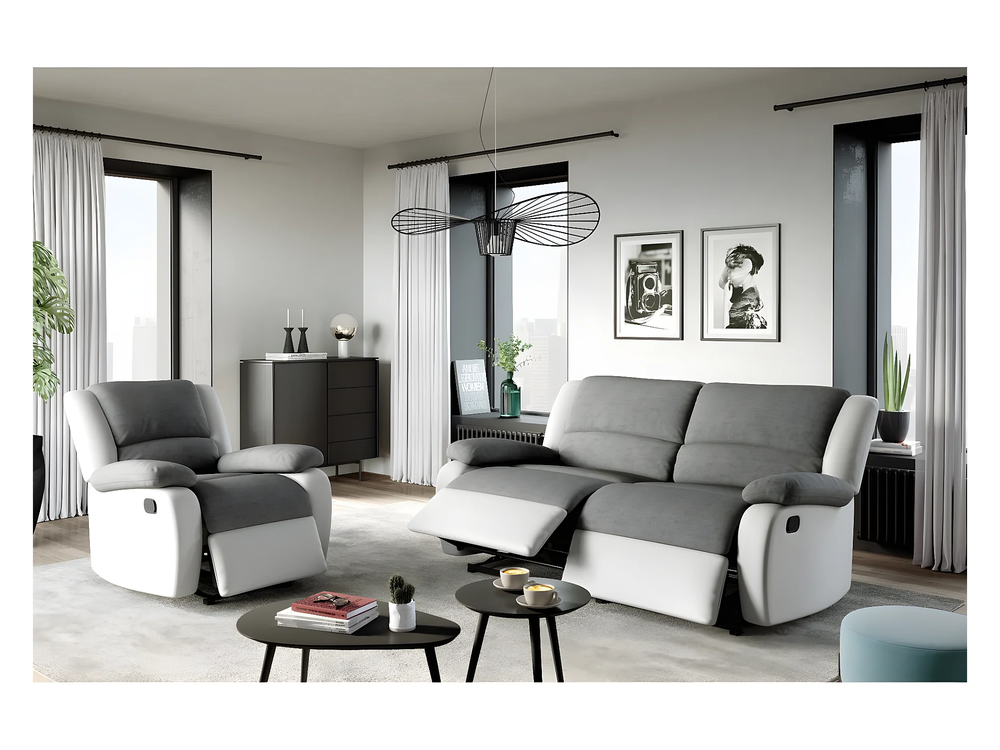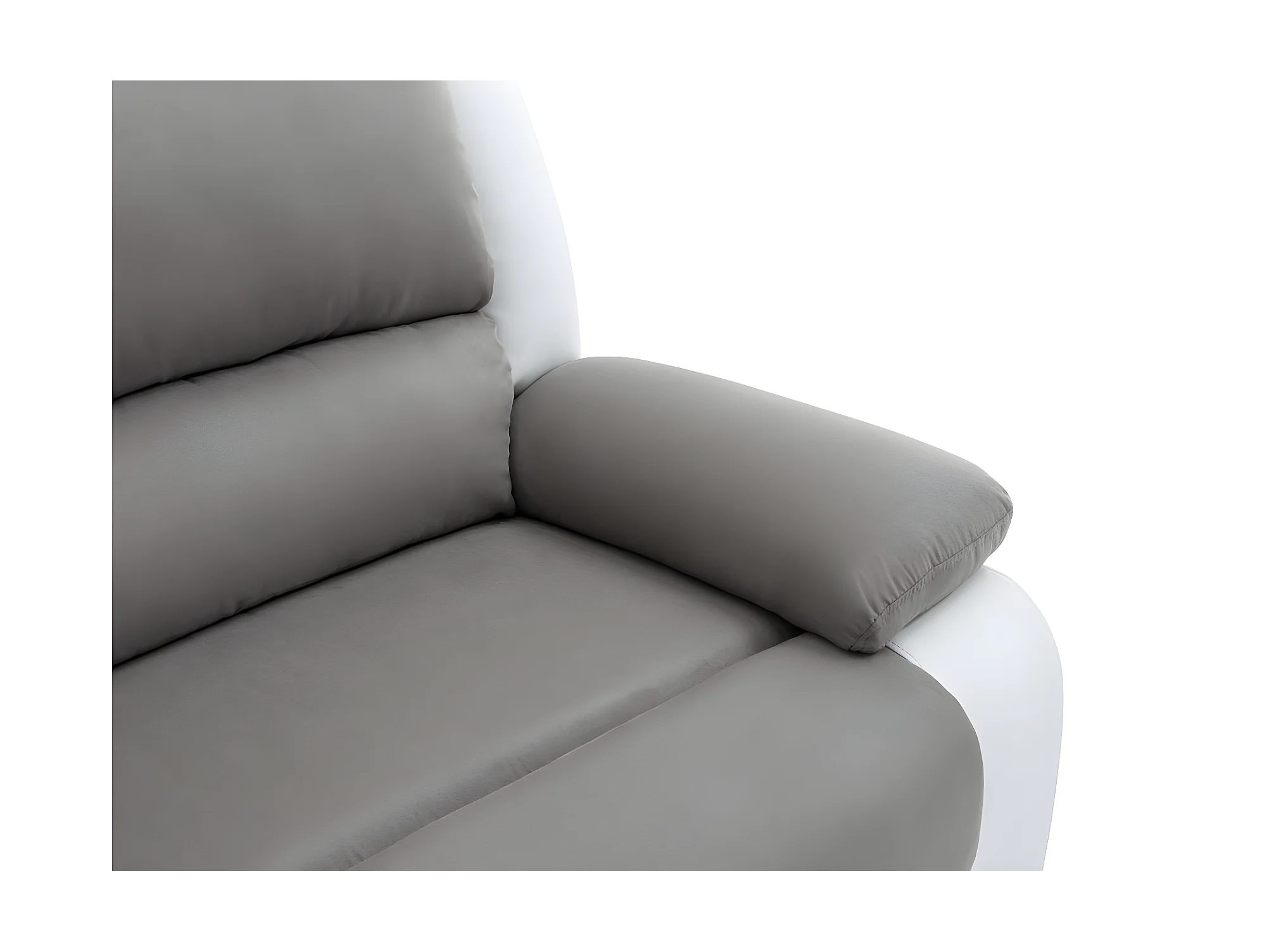 Canapé relax manuel 3 places avec 2 assises XXL Léo en microfibre et simili - Blanc/Gris - L193 x P93 x H96cm - Loungitude
