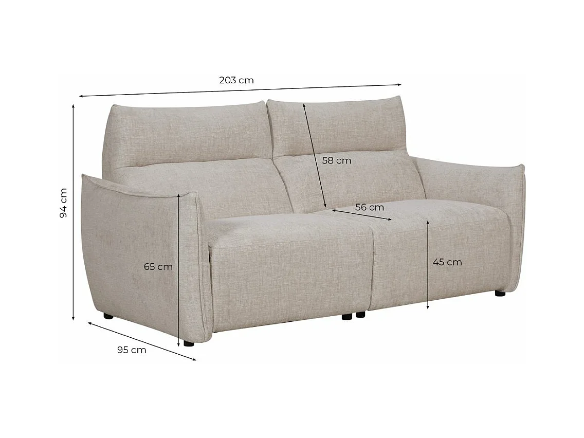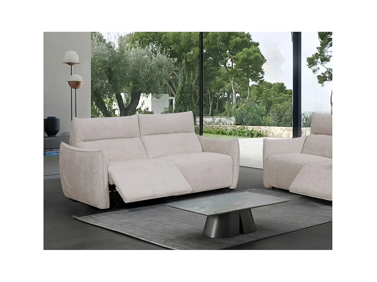 Canapé de relaxation électrique 3 places Melly en tissu - Beige - L203 x P95 x H94cm - Loungitude