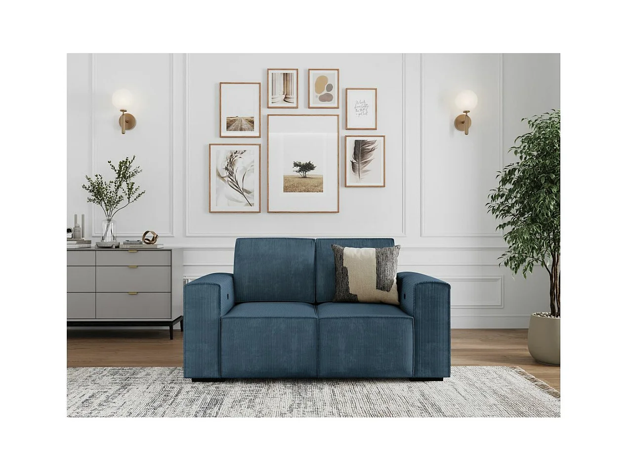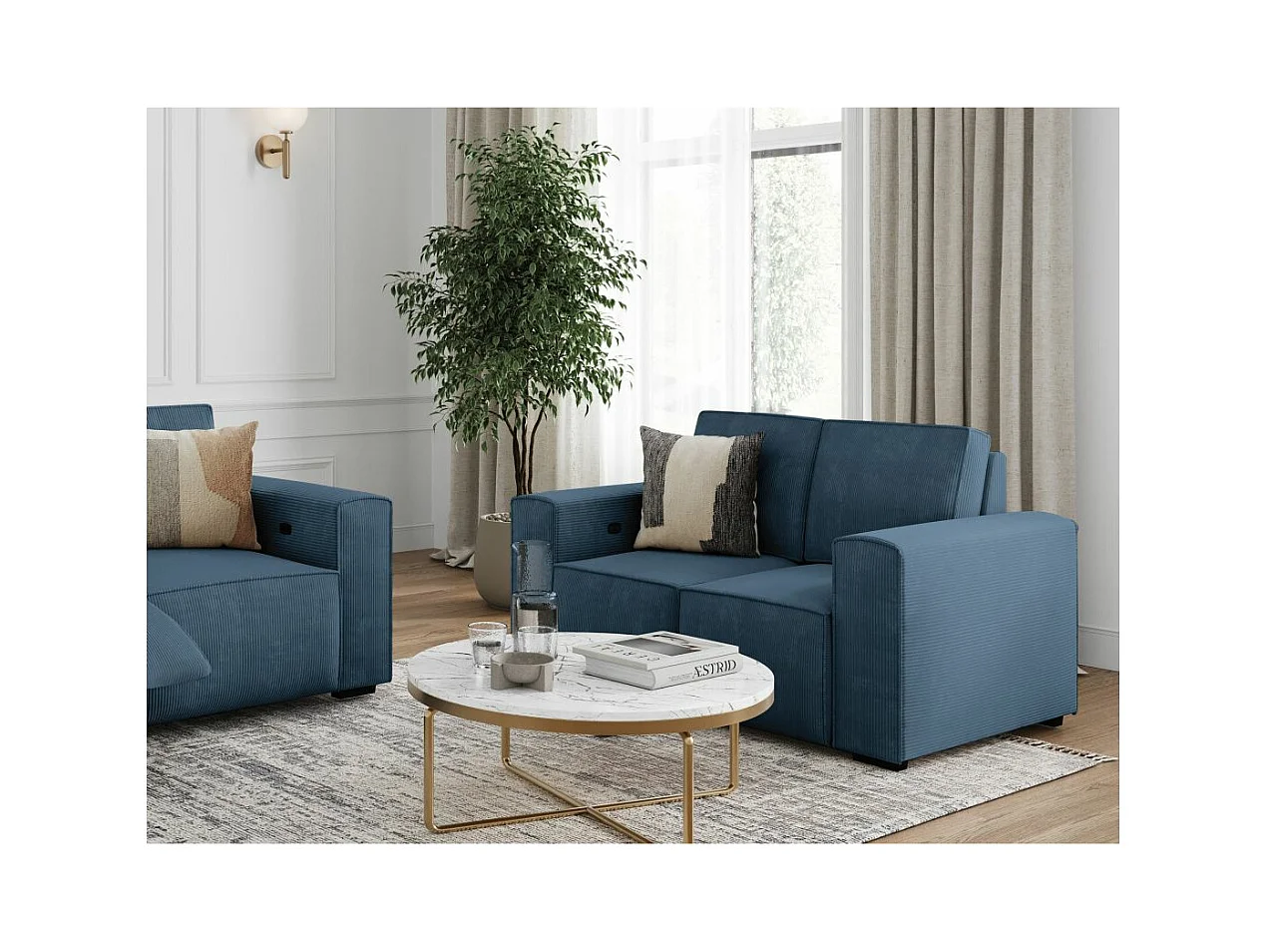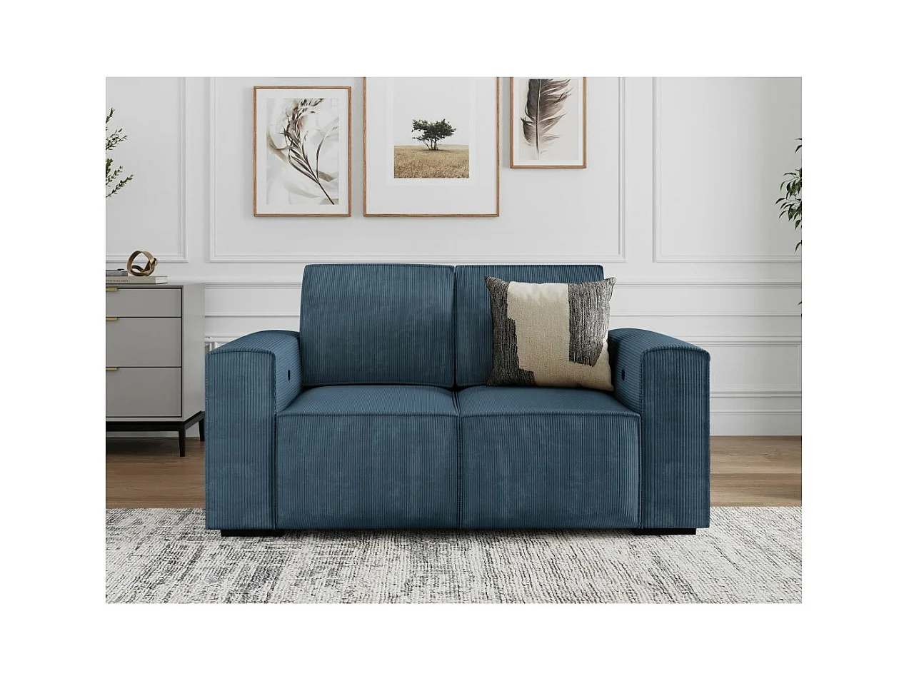 Canapé de relaxation électrique Charline 2 places en velours côtelé - Bleu foncé - L165 x P97 x H92cm - Loungitude