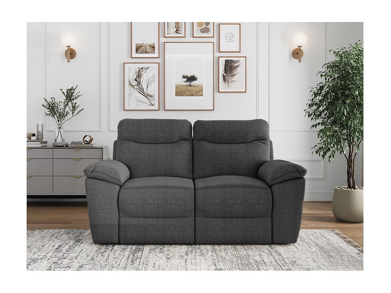 Canapé de relaxation électrique Ross 2 places en tissu texturé 3D - Gris anthracite - L160 x P100 x H102cm - Loungitude