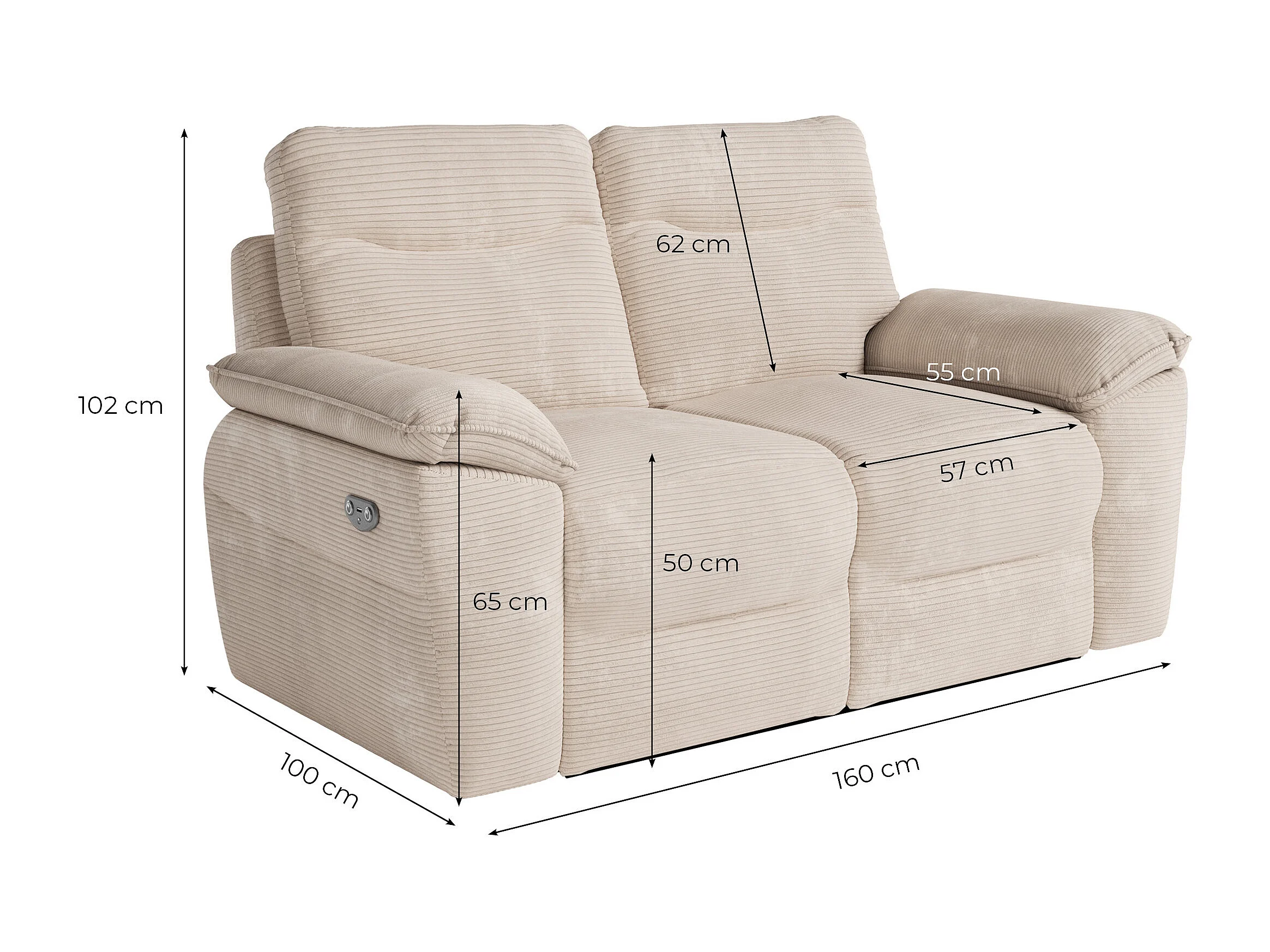 Canapé de relaxation électrique Ross 2 places en velours côtelé - Terracotta - L160 x P100 x H102cm - Loungitude
