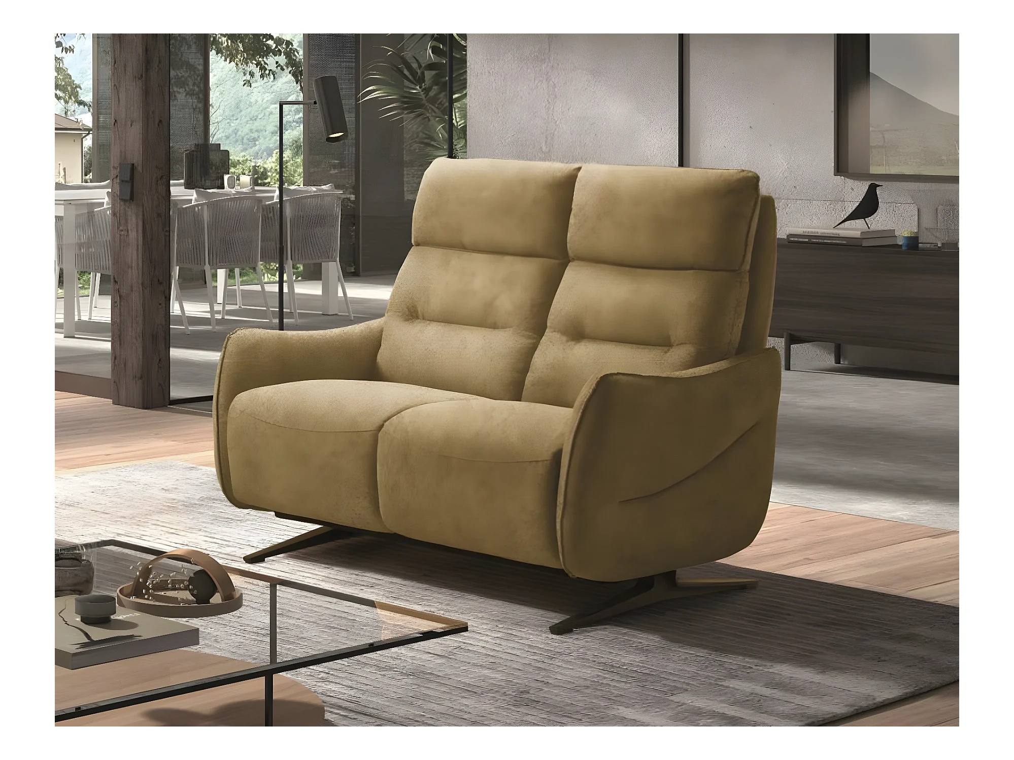 Canapé de relaxation en microfibre Kondonia-Couleur Jaune moutarde-Système Fixe - sans relax-2 places