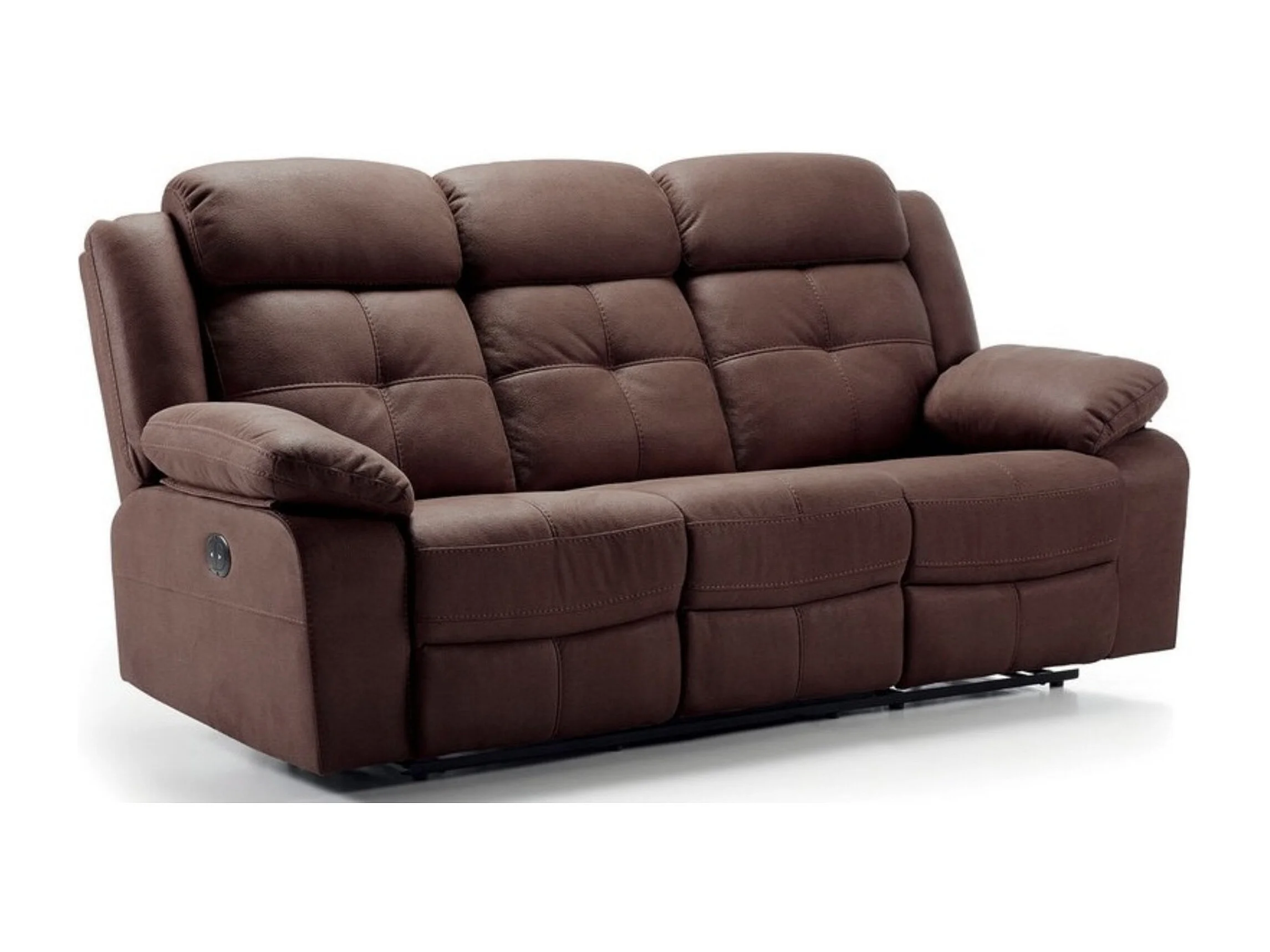 Canapé de relaxation en nubuck Farenza-Marron-Système Electrique-3 places